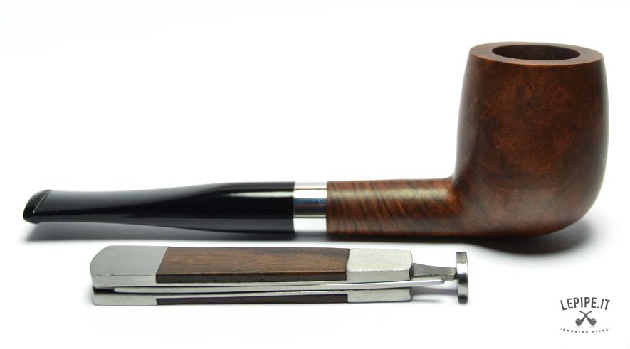 Questa Chacom Clover Billiard interpreta con sobria eleganza una delle forme più iconiche della tradizione, con linee dritte, profilo slanciato e un vaso cilindrico ben proporzionato che esprime equilibrio e classicità. La finitura liscia marrone esalta il carattere naturale della radica, mentre la vera metallica inserita tra canna e bocchino aggiunge un dettaglio luminoso che impreziosisce l’insieme. Il bocchino nero in metacrilato completa il design con un contrasto raffinato, donando armonia visiva e comfort d’uso. Con una lunghezza di 146 mm, questo modello offre una presenza elegante e una presa ben bilanciata, ideale per chi apprezza la purezza senza tempo della shape Billiard.