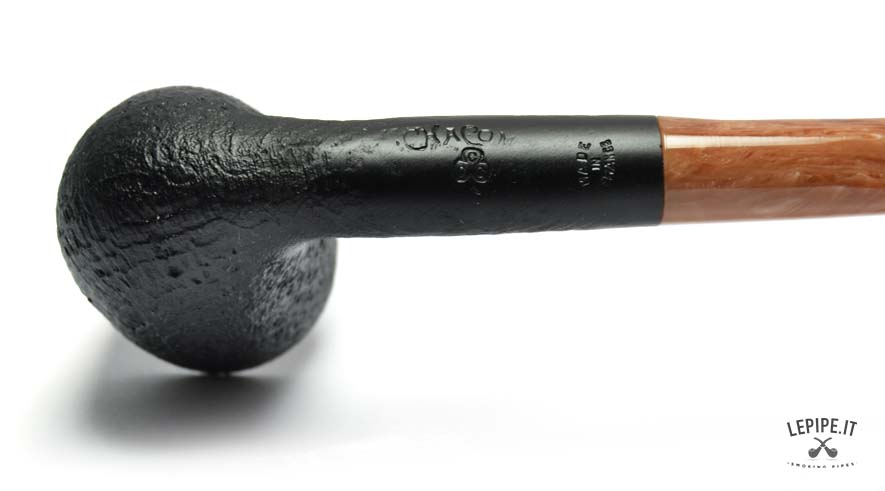 Questa Chacom Clover Bent Dublin presenta una silhouette curva e slanciata, con un fornello conico tipico della shape Dublin che si amplia delicatamente verso l’alto, offrendo una presa comoda e una presenza elegante. La finitura sabbiata nera valorizza la texture della radica, creando un piacevole contrasto con il bordo superiore liscio e con il bocchino in ebanite. Con un diametro interno di 19 mm e un diametro esterno di 36 mm, questa pipa offre una camera equilibrata per una fumata regolare. Il peso di 35 grammi assicura leggerezza e maneggevolezza, rendendola adatta a un uso quotidiano senza affaticamento.