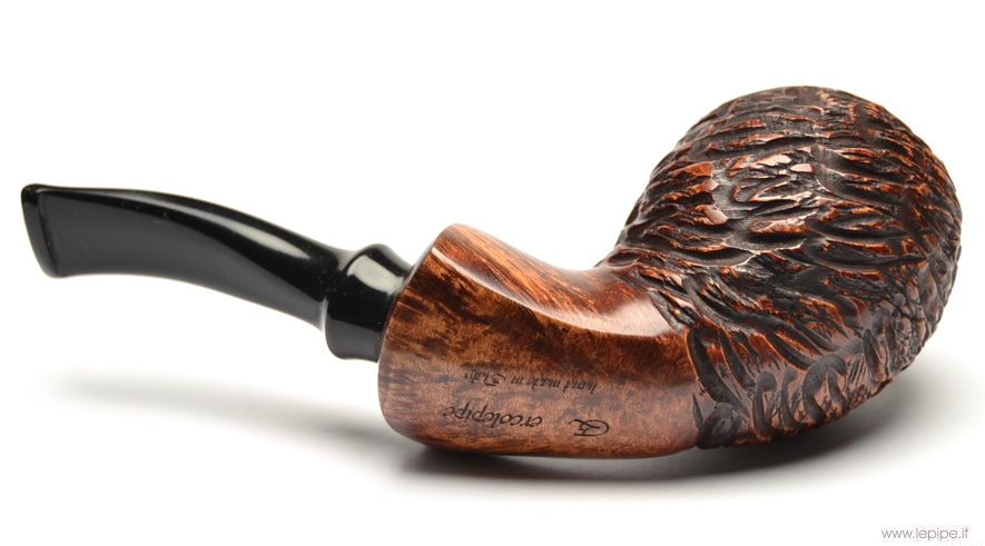 Pipa Bogni - n. 28  Bocchino in metacrilato Con sede per filtro da 9 mm. Rusticata Senza elaborazione Diametro Interno: 21 mm. Diametro Esterno: 48 mm. Lunghezza: 138 mm. Altezza: 48 mm. Peso: 73 gr. Profondità: 44 mm.