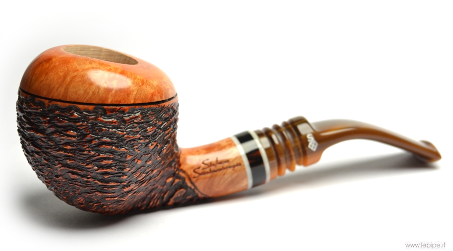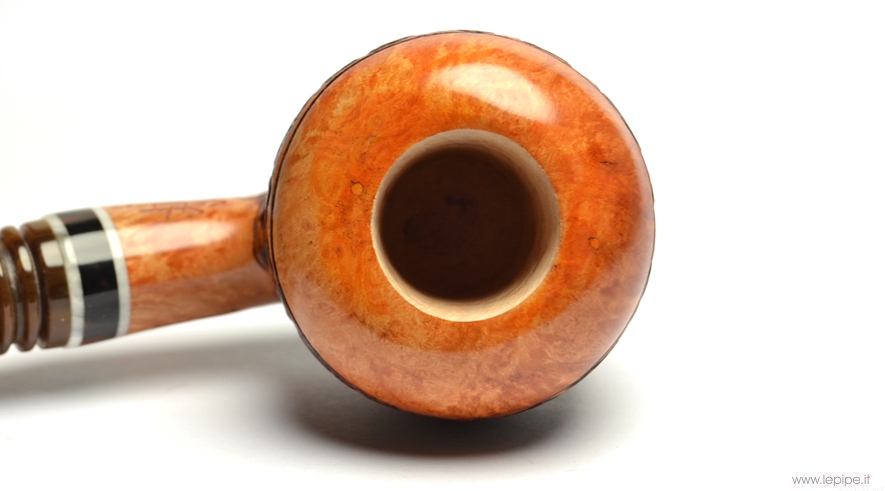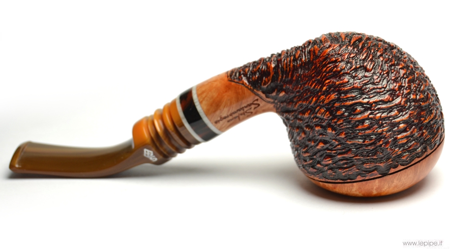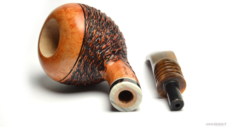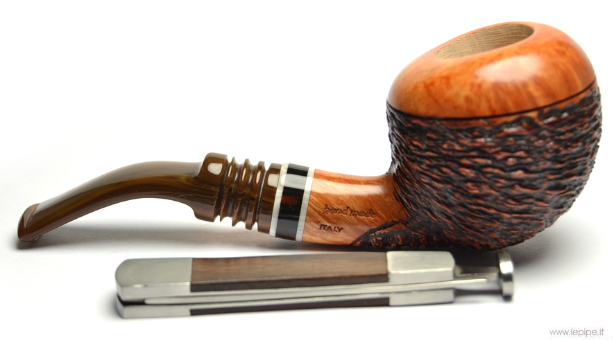 Pipa Santambrogio - Rusticata n. 104 Grande Bocchino in metacrilato Senza filtro Rusticata Con altra elaborazione Diametro Interno: 21 mm. Diametro Esterno: 48 mm. Lunghezza: 140 mm. Altezza: 51 mm. Peso: 66 gr. Profondità: 38 mm.
