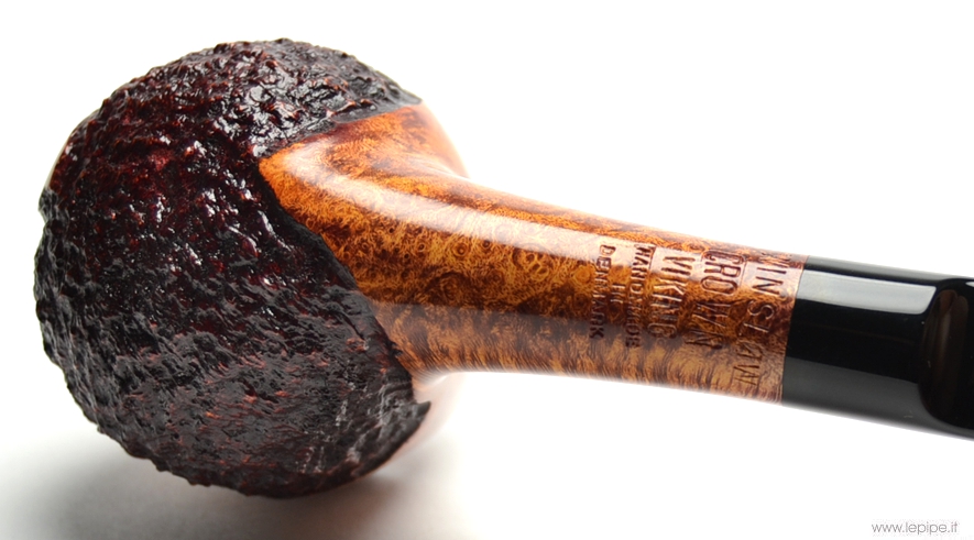 Pipa Crown Viking n. 14  Bocchino in metacrilato Senza filtro Semi rusticata Senza elaborazione Diametro Interno: 18 mm. Diametro Esterno: 46 mm. Lunghezza: 136 mm. Altezza: 46 mm. Peso: 55 gr. Profondità: 35 mm.