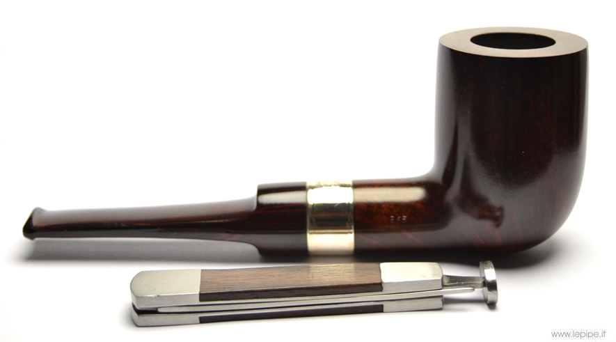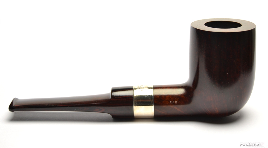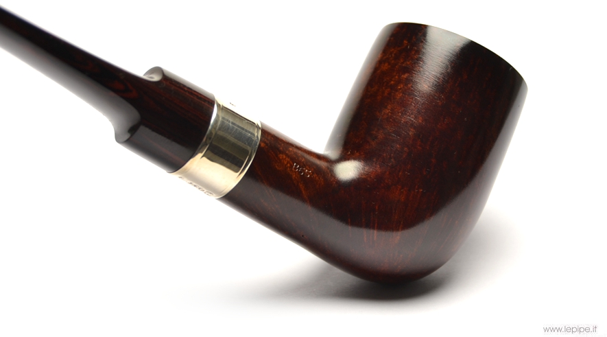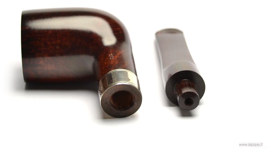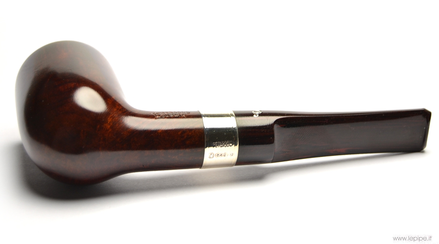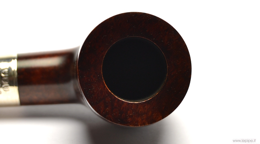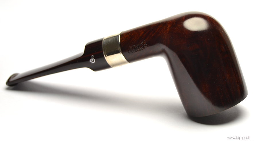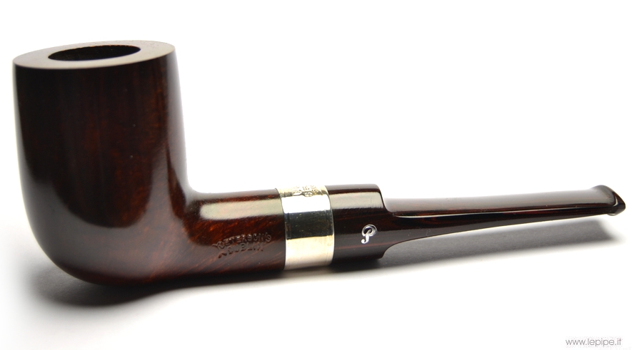 Pipa Peterson - Avoca n. 01  Bocchino in metacrilato Senza filtro Liscia Con elaborazione in argento Diametro Interno: 20 mm. Diametro Esterno: 39 mm. Lunghezza: 142 mm. Altezza: 55 mm. Peso: 59 gr. Profondità: 48 mm.