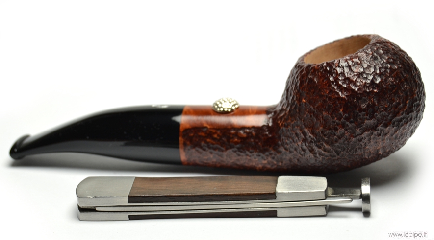 Pipa Savinelli - Golf n. 05  Bocchino in metacrilato Senza filtro Sabbiata Con altra elaborazione Diametro Interno: 20 mm. Diametro Esterno: 44 mm. Lunghezza: 134 mm. Altezza: 36 mm. Peso: 50 gr. Profondità: 29 mm.