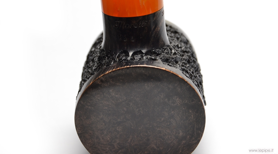 Pipa Moretti - Rusticata n. 33  Bocchino in metacrilato Senza filtro Rusticata Senza elaborazione Diametro Interno: 20 mm. Diametro Esterno: 48 mm. Lunghezza: 114 mm. Altezza: 55 mm. Peso: 79 gr. Profondità: 37 mm.