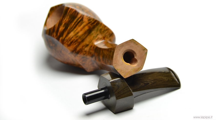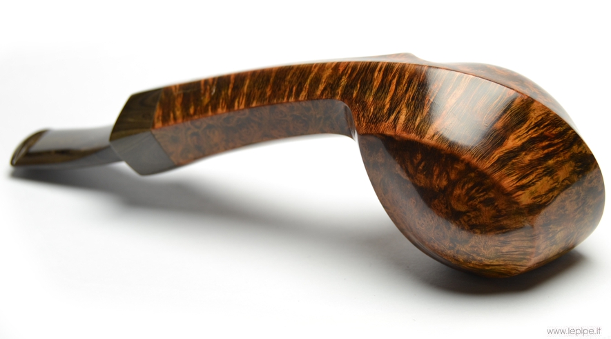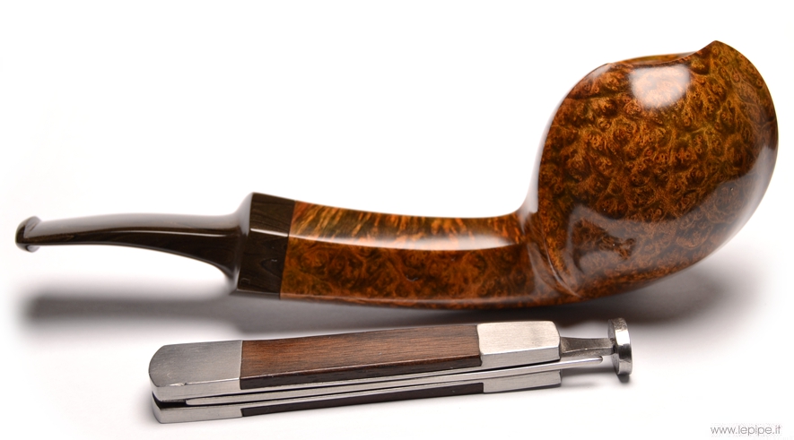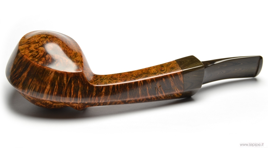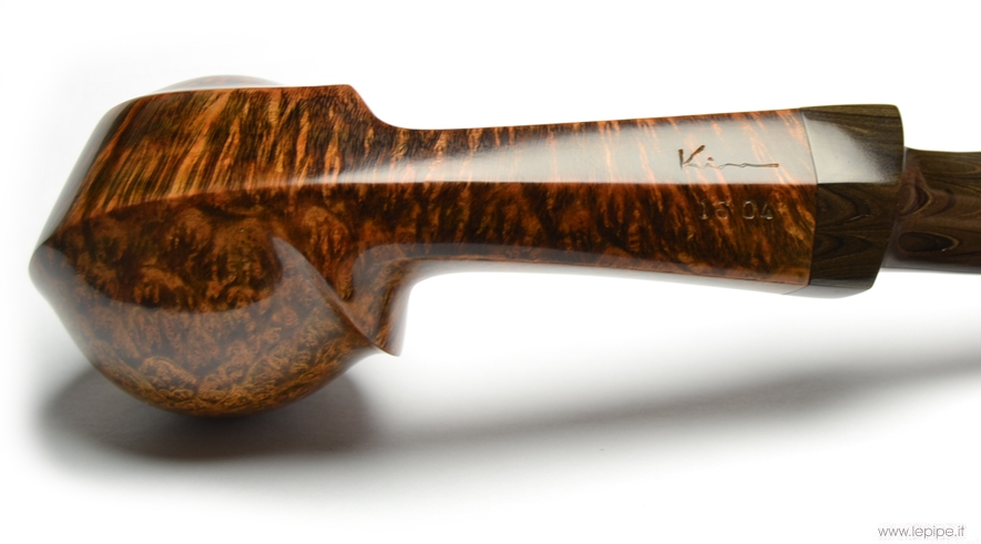 Pipa Kim Jong Wook - Liscia n. 01  Bocchino in ebanite Senza filtro Liscia Con altra elaborazione Diametro Interno: 19 mm. Diametro Esterno: 43 mm. Lunghezza: 147 mm. Altezza: 44 mm. Peso: 56 gr. Profondità: 35 mm.