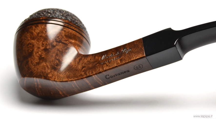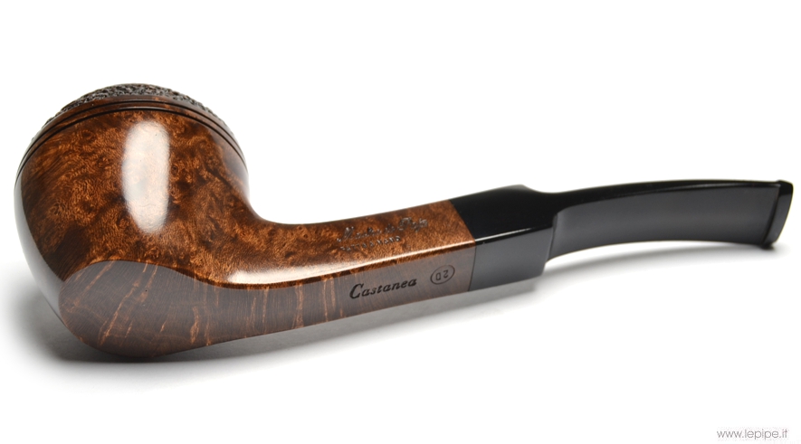 Pipa Mastro de Paja - Castanea n. 24  Bocchino in metacrilato Senza filtro Semi rusticata Senza elaborazione Diametro Interno: 21 mm. Diametro Esterno: 45 mm. Lunghezza: 152 mm. Altezza: 49 mm. Peso: 52 gr. Profondità: 37 mm.