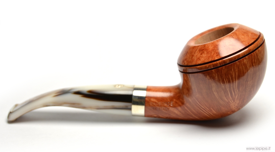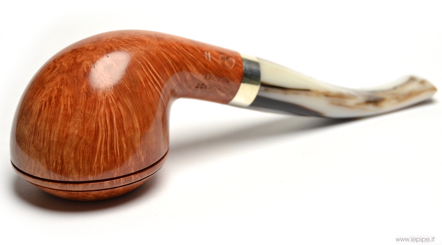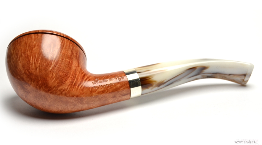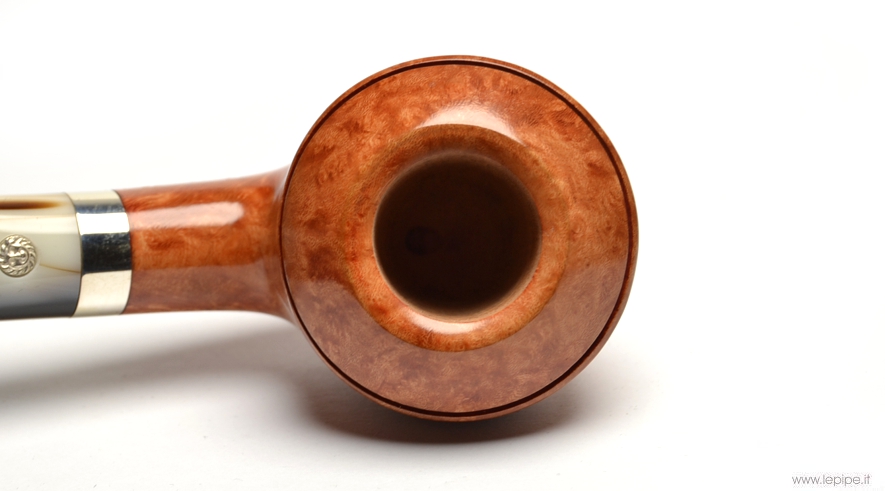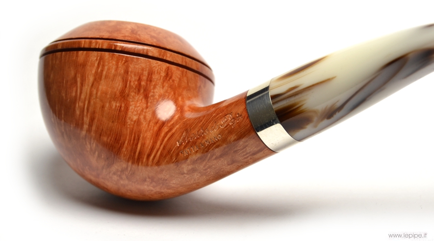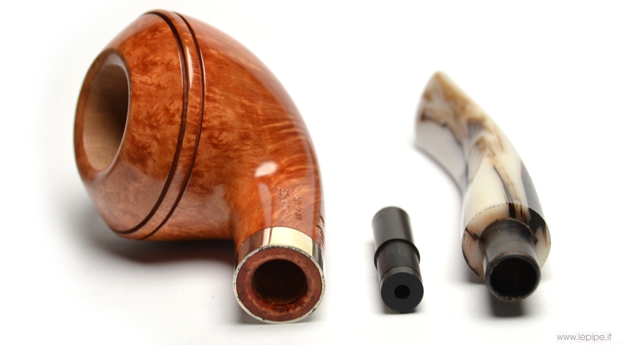 Pipa Mastro de Paja - Collezione Elite n. 11  Bocchino in metacrilato Con sede per filtro da 9 mm. Liscia Con elaborazione in argento Diametro Interno: 20 mm. Diametro Esterno: 46 mm. Lunghezza: 143 mm. Altezza: 43 mm. Peso: 54 gr. Profondità: 32 mm.