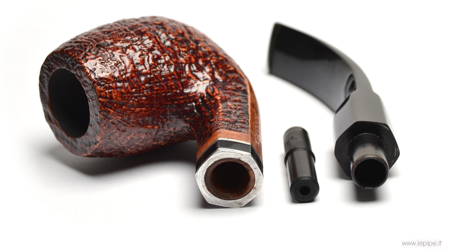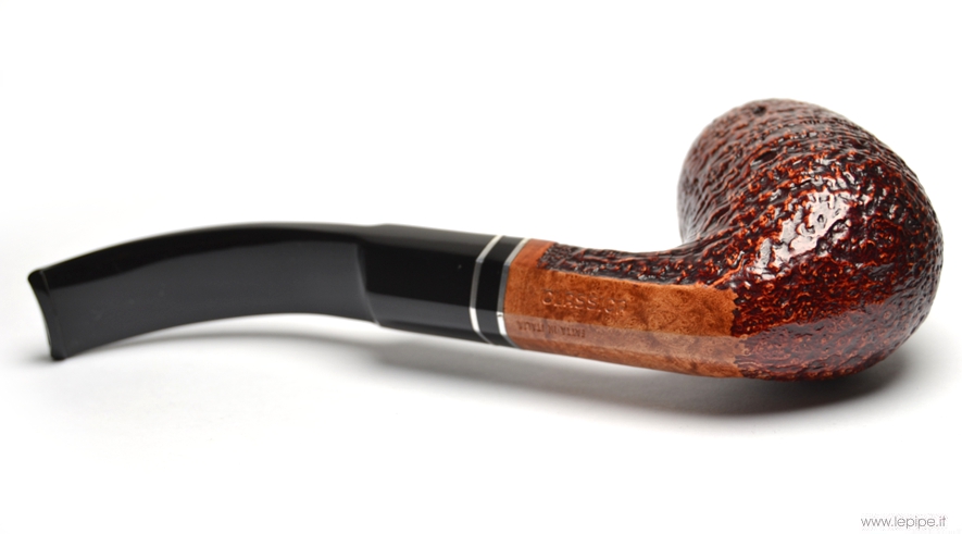 Pipa Mastro de Paja - Classica Sabbiata n. 44  Bocchino in metacrilato Con sede per filtro da 9 mm. Sabbiata Con altra elaborazione Diametro Interno: 20 mm. Diametro Esterno: 39 mm. Lunghezza: 156 mm. Altezza: 52 mm. Peso: 56 gr. Profondità: 43 mm.