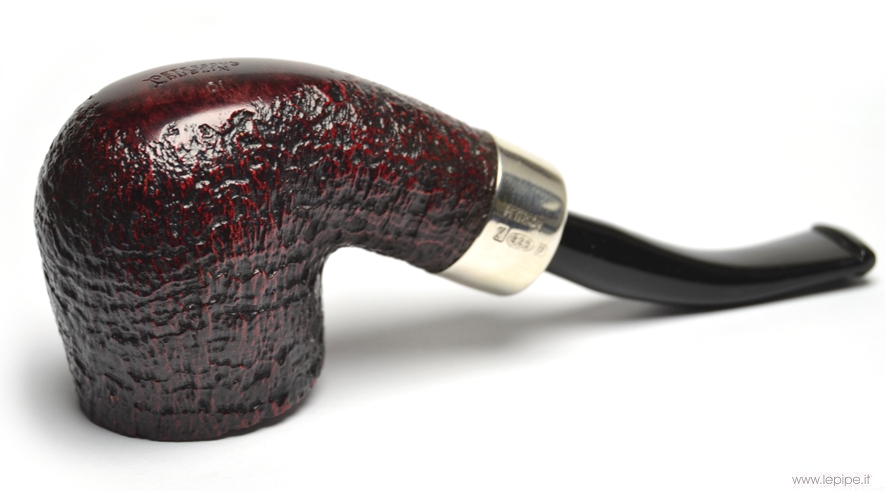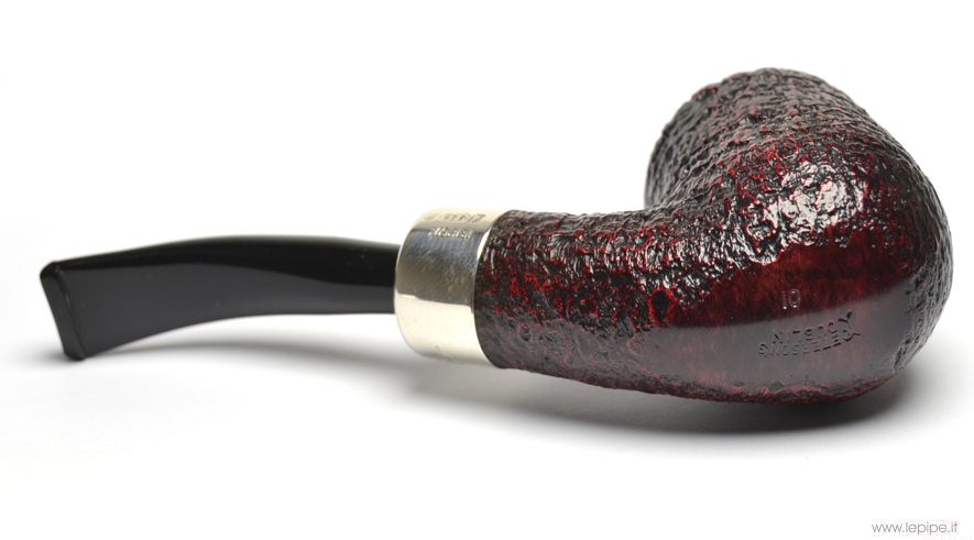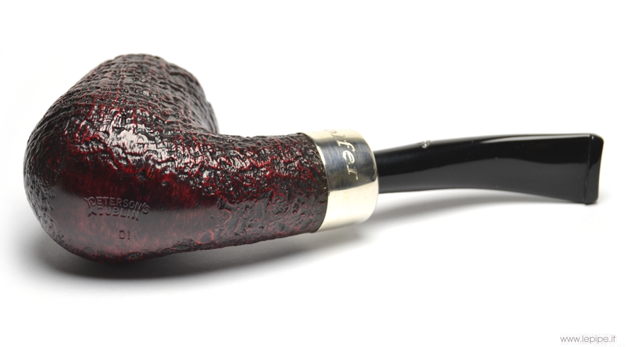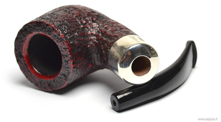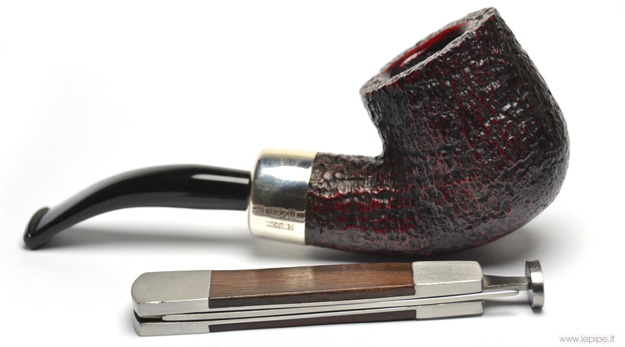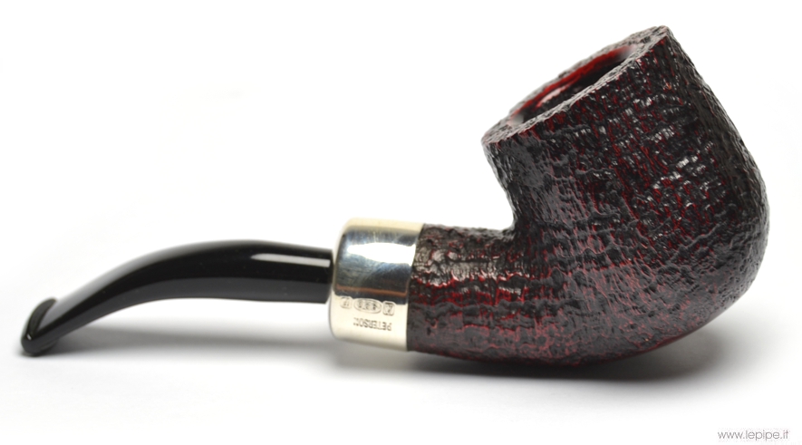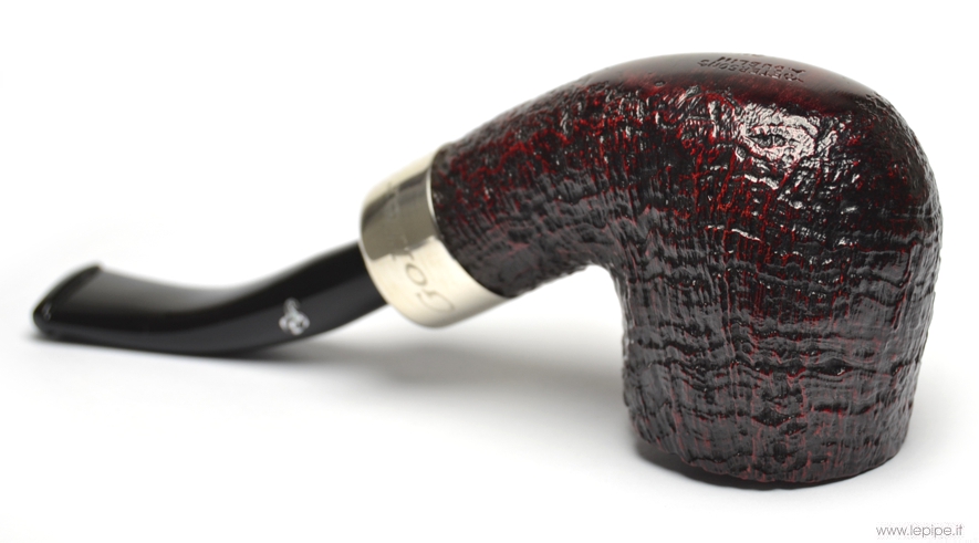 Pipa Peterson - Golfer n. 06  Bocchino in metacrilato Senza filtro Sabbiata Con elaborazione in argento Diametro Interno: 21 mm. Diametro Esterno: 38 mm. Lunghezza: 128 mm. Altezza: 44 mm. Peso: 47 gr. Profondità: 39 mm.