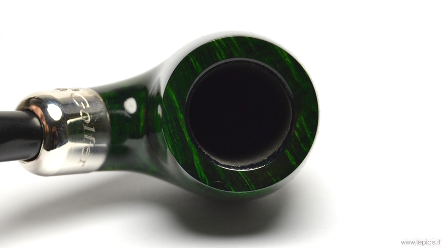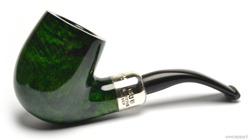 Pipa Peterson - Golfer n. 09  Bocchino in metacrilato Senza filtro Liscia Con elaborazione in argento Diametro Interno: 20 mm. Diametro Esterno: 37 mm. Lunghezza: 113 mm. Altezza: 47 mm. Peso: 43 gr. Profondità: 38 mm.