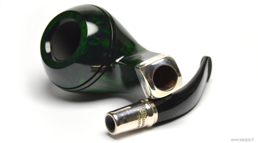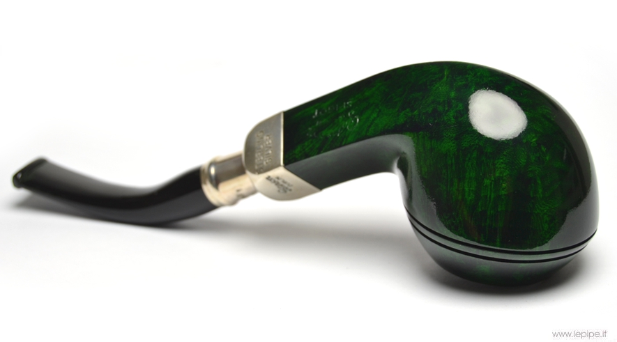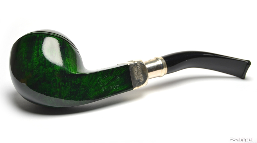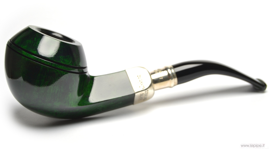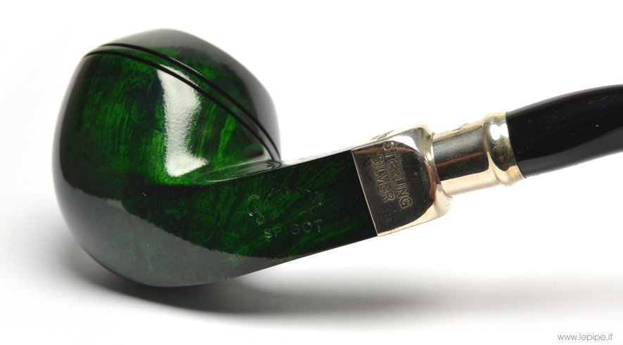 Pipa Peterson - Green Army Spray Spigot n. 21  Bocchino in metacrilato Senza filtro Liscia Con elaborazione in argento Diametro Interno: 20 mm. Diametro Esterno: 49 mm. Lunghezza: 159 mm. Altezza: 48 mm. Peso: 60 gr. Profondità: 34 mm.