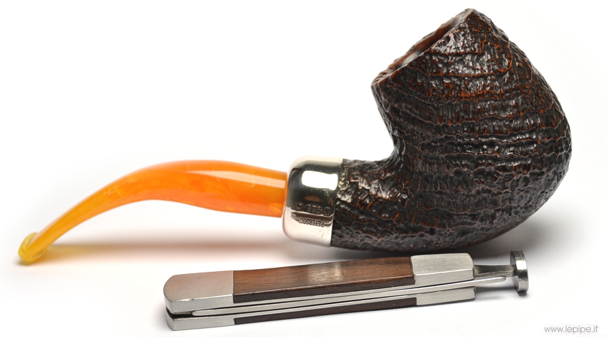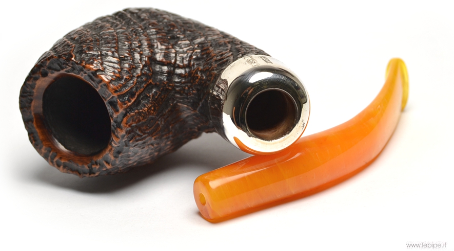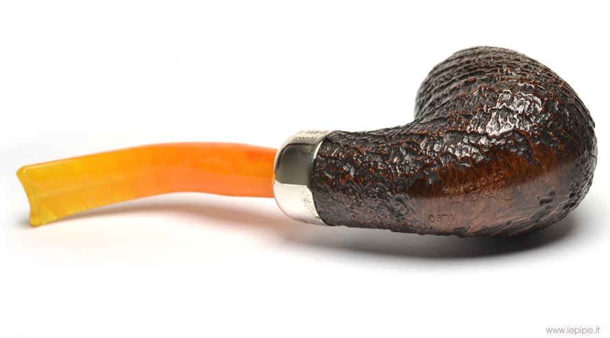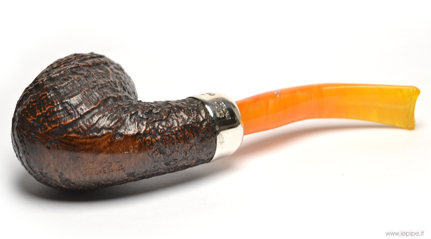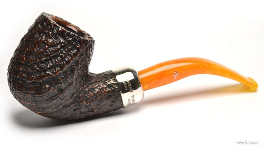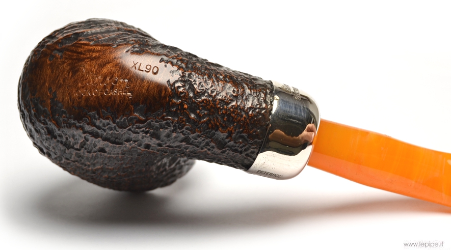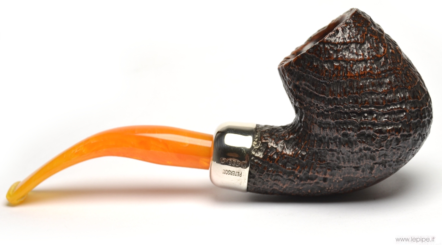 Pipa Peterson - Rock of Cashel n. 13  Bocchino in metacrilato Senza filtro Sabbiata Con elaborazione in argento Diametro Interno: 21 mm. Diametro Esterno: 40 mm. Lunghezza: 144 mm. Altezza: 50 mm. Peso: 57 gr. Profondità: 42 mm.