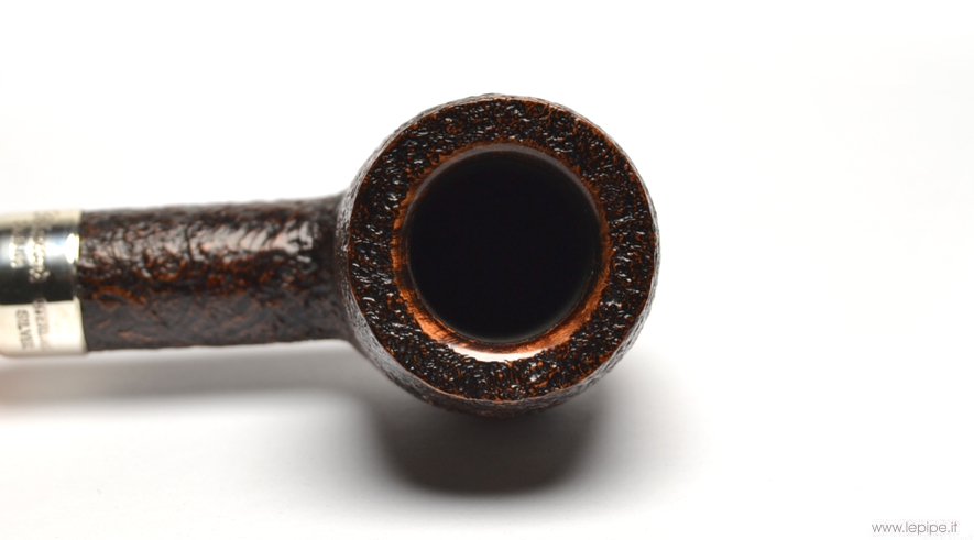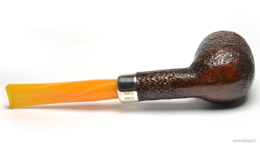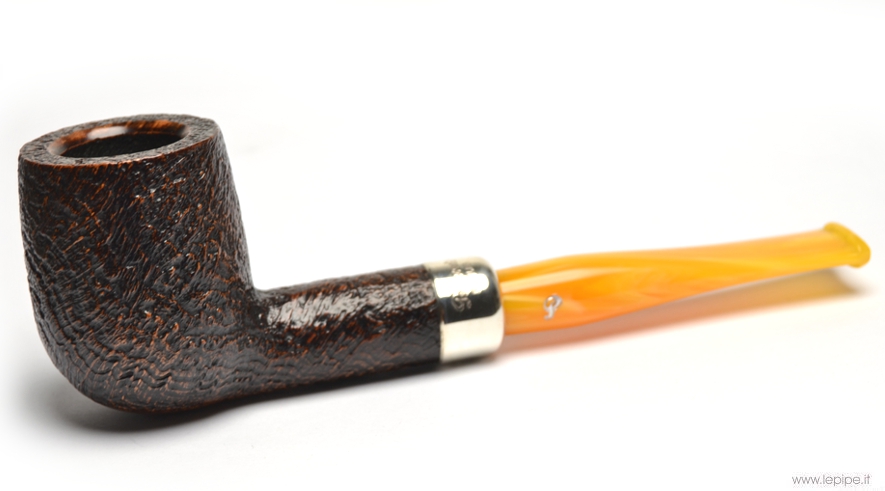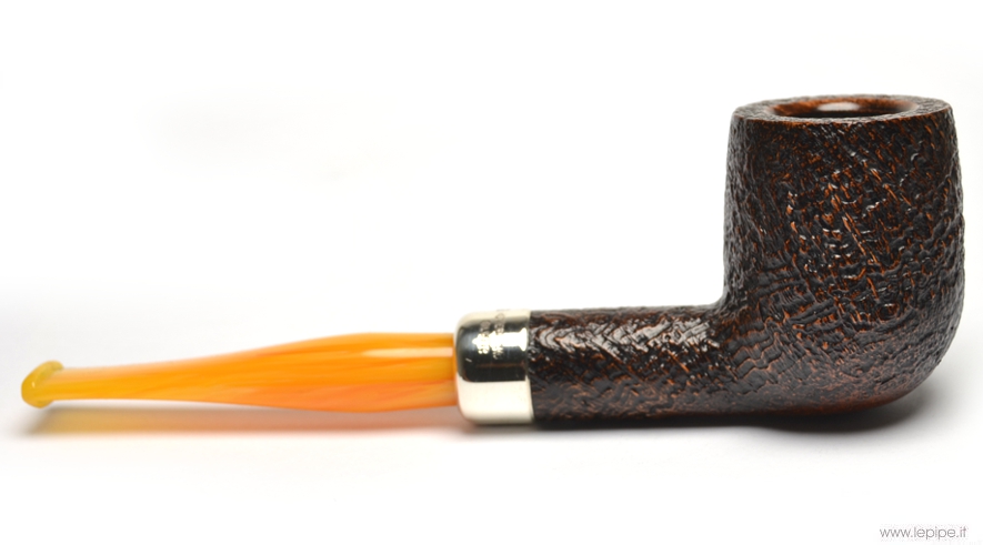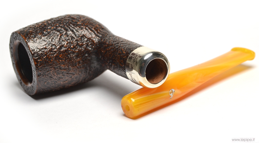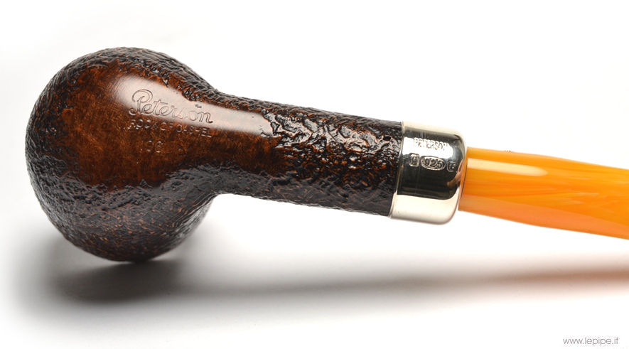 Pipa Peterson - Rock of Cashel n. 16  Bocchino in metacrilato Senza filtro Sabbiata Con elaborazione in argento Diametro Interno: 20 mm. Diametro Esterno: 38 mm. Lunghezza: 153 mm. Altezza: 48 mm. Peso: 48 gr. Profondità: 40 mm.