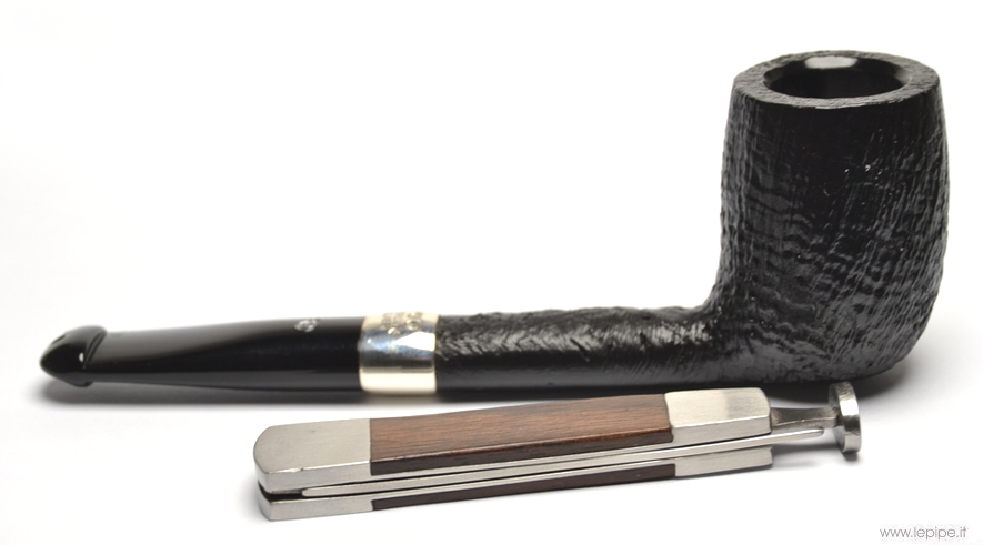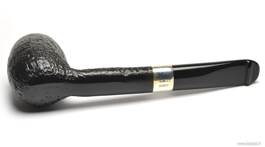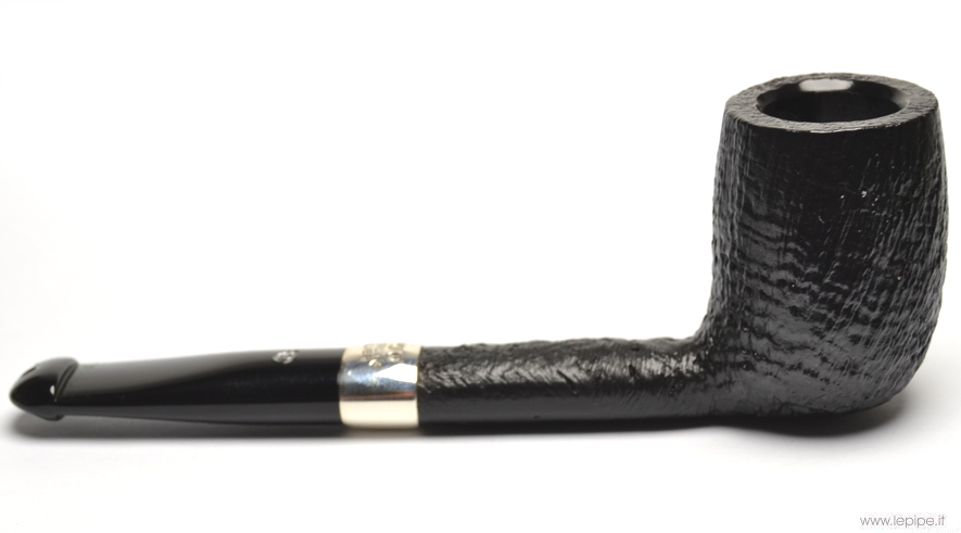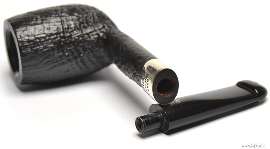 Pipa Peterson - Canadian n. 03  Bocchino in metacrilato Senza filtro Sabbiata Con elaborazione in argento Diametro Interno: 19 mm. Diametro Esterno: 34 mm. Lunghezza: 140 mm. Altezza: 47 mm. Peso: 33 gr. Profondità: 43 mm.