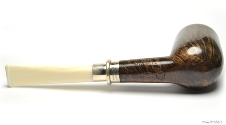 Pipa Ser Jacopo - Albus et Niger n. 14 L - Melolhonta Bocchino in metacrilato Senza filtro Liscia Con elaborazione in argento Diametro Interno: 20 mm. Diametro Esterno: 38 mm. Lunghezza: 153 mm. Altezza: 56 mm. Peso: 74 gr. Profondità: 49 mm.