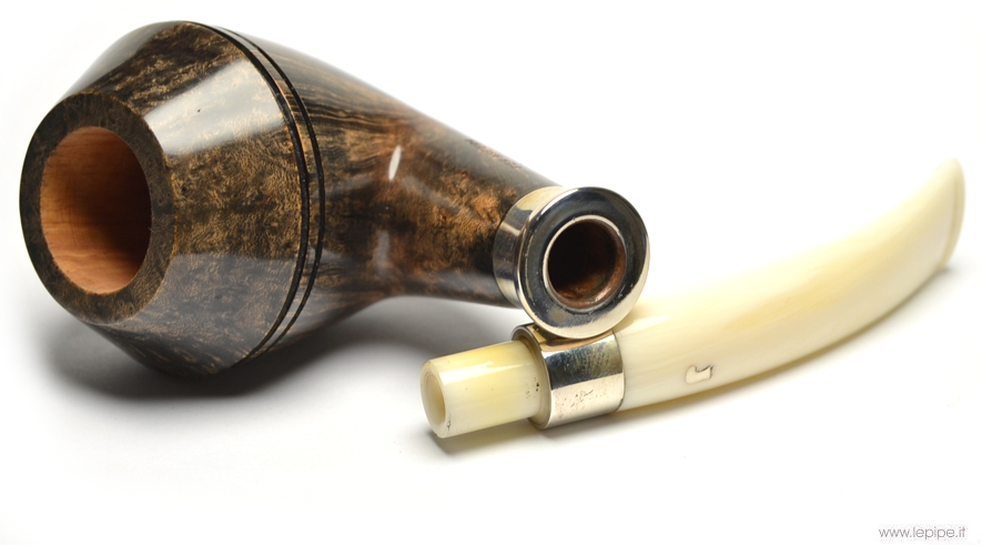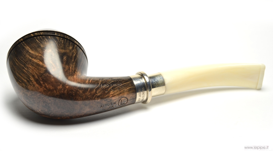 Pipa Ser Jacopo - Albus et Niger n. 15 L - Melolhonta Bocchino in metacrilato Senza filtro Liscia Con elaborazione in argento Diametro Interno: 21 mm. Diametro Esterno: 48 mm. Lunghezza: 156 mm. Altezza: 54 mm. Peso: 76 gr. Profondità: 47 mm.