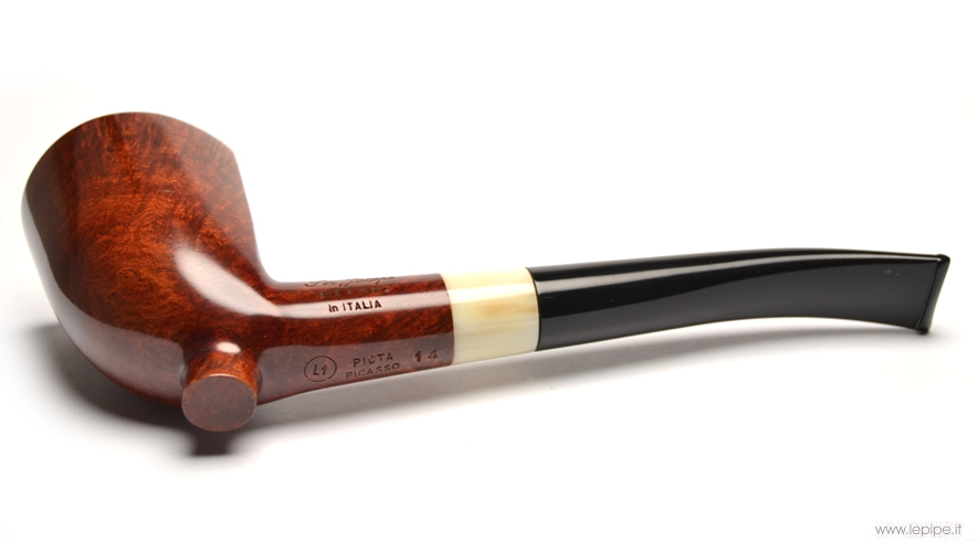 Pipa Ser Jacopo - Picta Picasso 14 n. 03 L1 Bocchino in metacrilato Senza filtro Liscia Con altra elaborazione Diametro Interno: 21 mm. Diametro Esterno: 40 mm. Lunghezza: 163 mm. Altezza: 61 mm. Peso: 50 gr. Profondità: 43 mm.