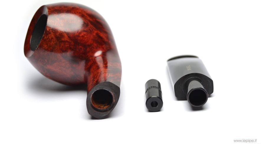 Pipa Larsen - Two Tone n. 04  Bocchino in ebanite Con sede per filtro da 9 mm. Liscia Senza elaborazione Diametro Interno: 20 mm. Diametro Esterno: 45 mm. Lunghezza: 133 mm. Altezza: 44 mm. Peso: 55 gr. Profondità: 0 mm.