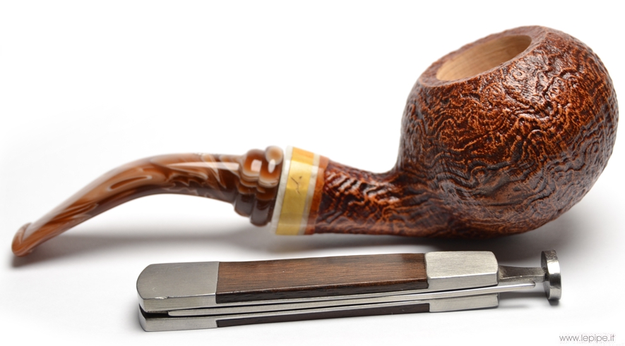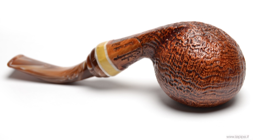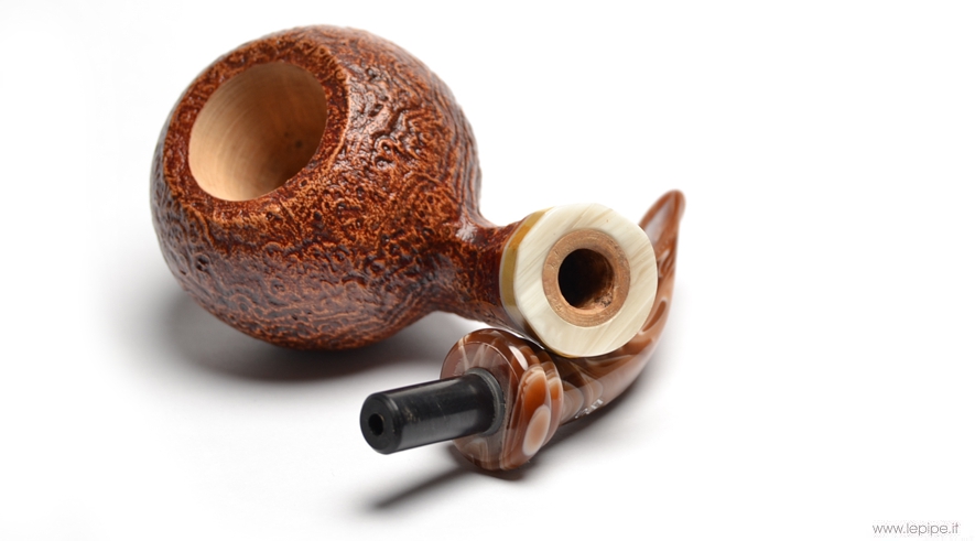 Pipa Santambrogio - Sabbiata n. 93  Bocchino in metacrilato Senza filtro Sabbiata Con altra elaborazione Diametro Interno: 20 mm. Diametro Esterno: 47 mm. Lunghezza: 136 mm. Altezza: 39 mm. Peso: 49 gr. Profondità: 30 mm.