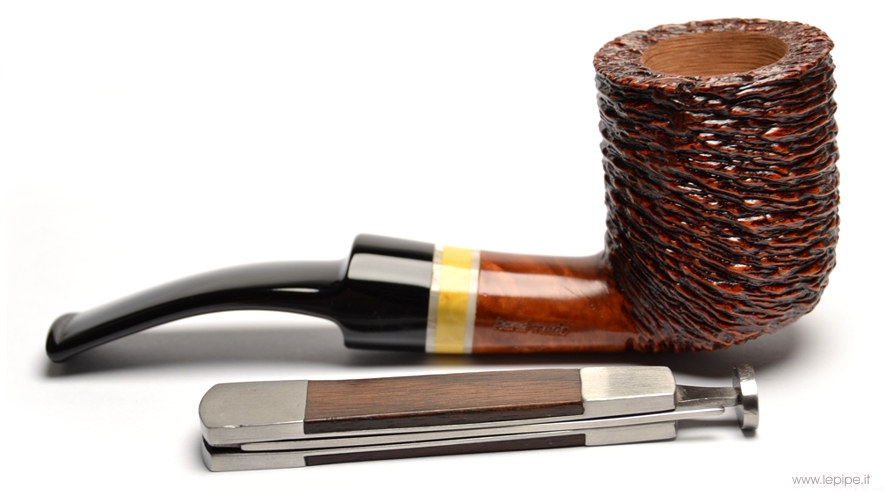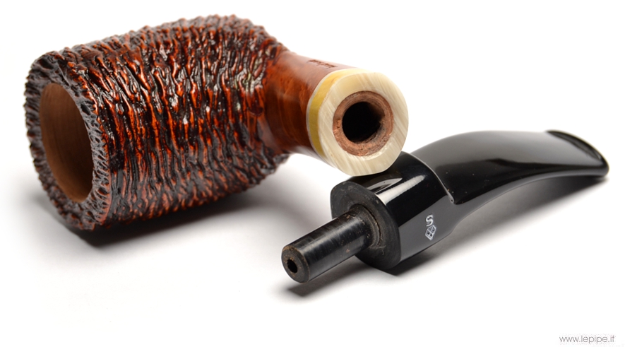 Pipa Santambrogio - Rusticata n. 107 Grande Bocchino in metacrilato Senza filtro Rusticata Con altra elaborazione Diametro Interno: 22 mm. Diametro Esterno: 37 mm. Lunghezza: 134 mm. Altezza: 50 mm. Peso: 55 gr. Profondità: 42 mm.