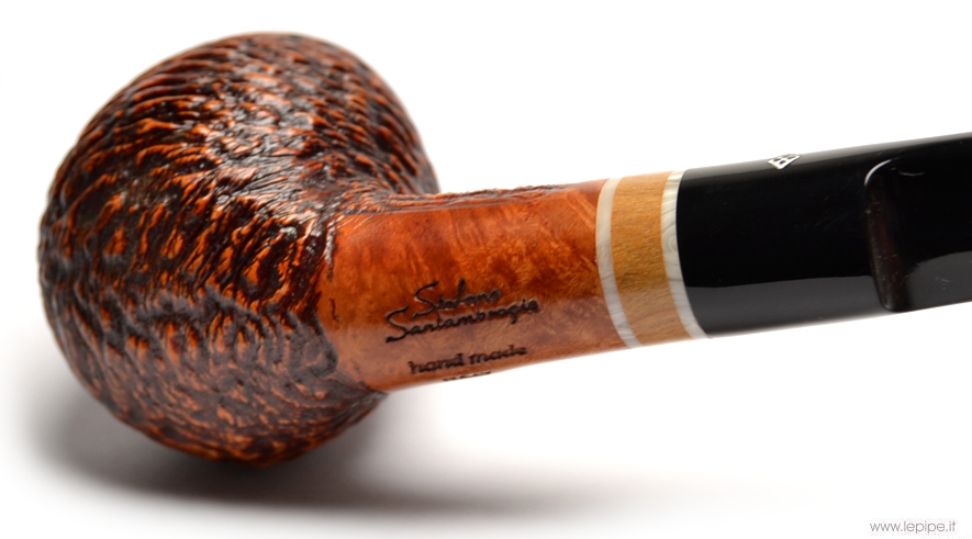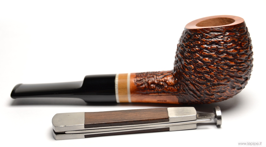 Pipa Santambrogio - Rusticata n. 108 Grande Bocchino in metacrilato Senza filtro Rusticata Con altra elaborazione Diametro Interno: 20 mm. Diametro Esterno: 41 mm. Lunghezza: 135 mm. Altezza: 43 mm. Peso: 48 gr. Profondità: 34 mm.