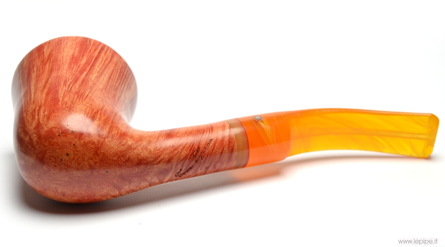 Pipa Spanu - F2 n. 36  Bocchino in metacrilato Senza filtro Liscia Con altra elaborazione Diametro Interno: 23 mm. Diametro Esterno: 49 mm. Lunghezza: 163 mm. Altezza: 62 mm. Peso: 76 gr. Profondità: 56 mm.
