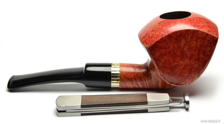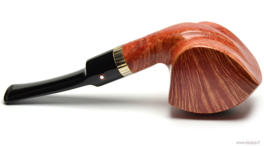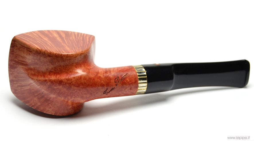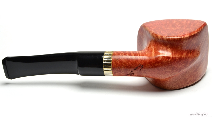 Pipa Spanu - F2 n. 38  Bocchino in metacrilato Senza filtro Liscia Con altra elaborazione Diametro Interno: 21 mm. Diametro Esterno: 40 mm. Lunghezza: 151 mm. Altezza: 51 mm. Peso: 72 gr. Profondità: 42 mm.