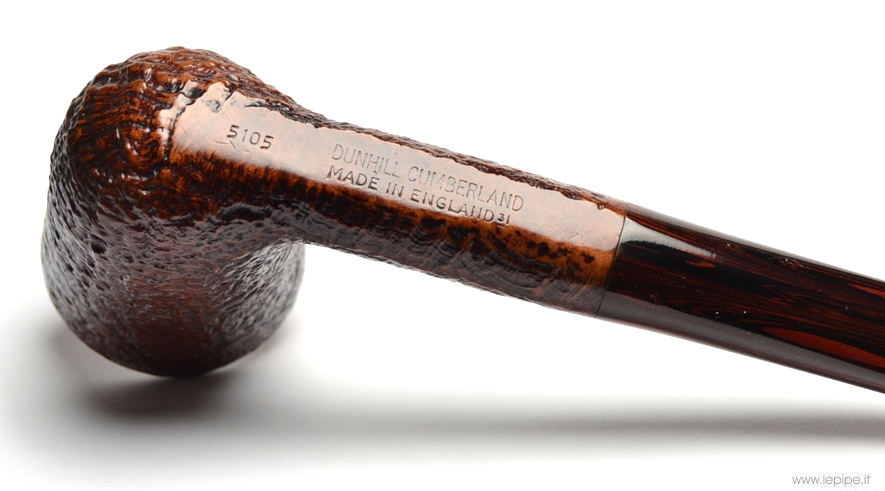 Pipa Dunhill - Cumberland n. 23 Dublin del 1991 - 5105 (Gruppo 5) - Pipa rodata Bocchino in ebanite Senza filtro Sabbiata Senza elaborazione Diametro Interno: 20 mm. Diametro Esterno: 36 mm. Lunghezza: 158 mm. Altezza: 49 mm. Peso: 42 gr. Profondità: 41 mm.