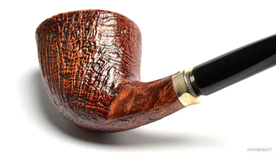 Pipa Pascucci - Sabbiata n. 07  Bocchino in metacrilato Senza filtro Sabbiata Con elaborazione in argento Diametro Interno: 20 mm. Diametro Esterno: 38 mm. Lunghezza: 157 mm. Altezza: 50 mm. Peso: 57 gr. Profondità: 36 mm.