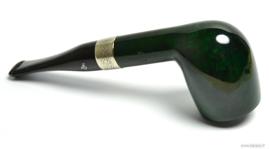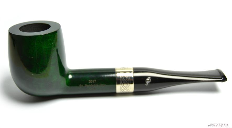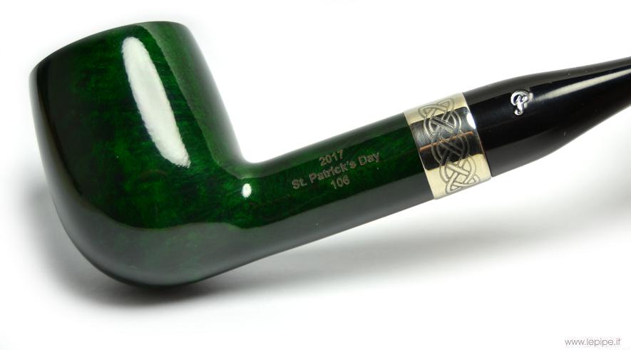 Pipa Peterson - St Patrick's Day 2017 n. 06 <a href=Perché Saint Patrick Day 2017? Bocchino in ebanite Senza filtro Liscia Con elaborazione in argento Diametro Interno: 20 mm. Diametro Esterno: 38 mm. Lunghezza: 147 mm. Altezza: 49 mm. Peso: 49 gr. Profondità: 38 mm.">