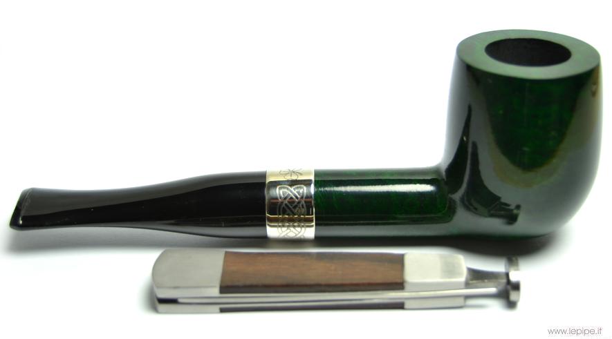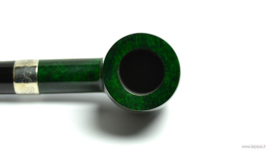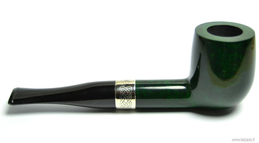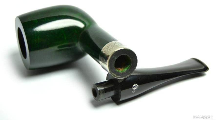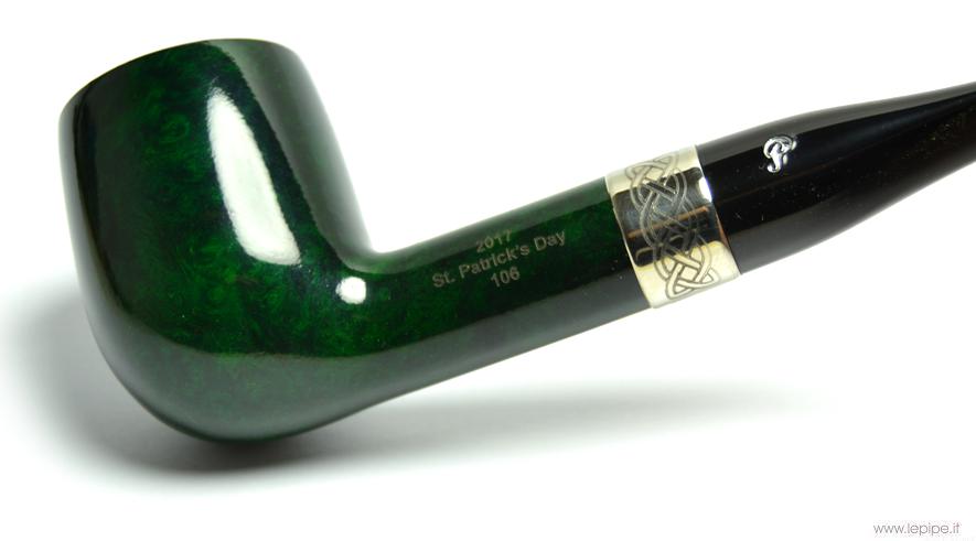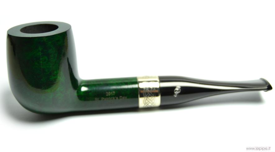 Pipa Peterson - St Patrick's Day 2017 n. 09 <a href=Perché Saint Patrick Day 2017? Bocchino in ebanite Senza filtro Liscia Con elaborazione in argento Diametro Interno: 21 mm. Diametro Esterno: 38 mm. Lunghezza: 147 mm. Altezza: 49 mm. Peso: 49 gr. Profondità: 38 mm.">