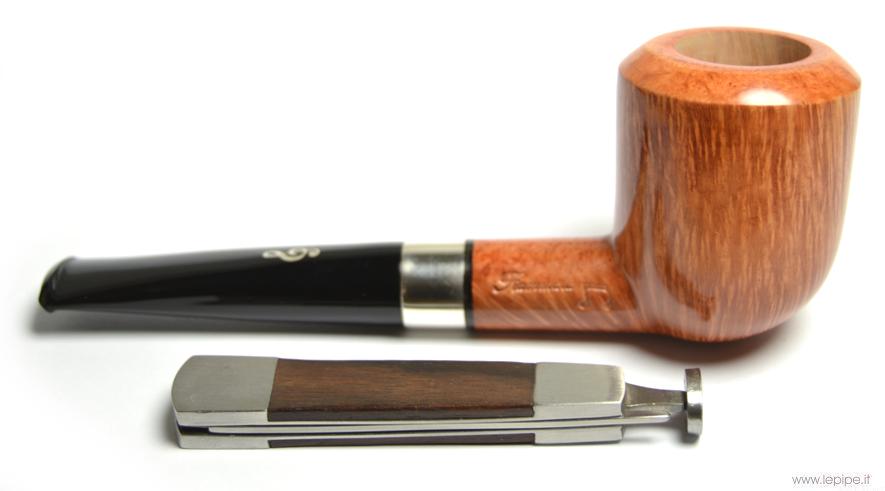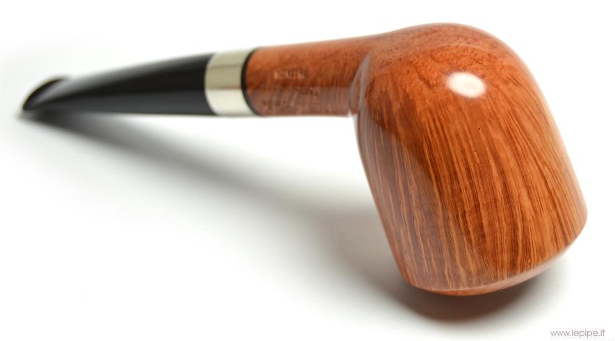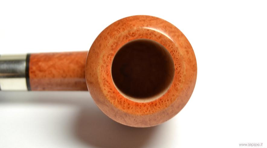 Pipa Don Carlos - Fiammata n. 7 2 Note Bocchino in ebanite Senza filtro Liscia Con elaborazione in argento Diametro Interno: 22 mm. Diametro Esterno: 40 mm. Lunghezza: 145 mm. Altezza: 50 mm. Peso: 50 gr. Profondità: 43 mm.