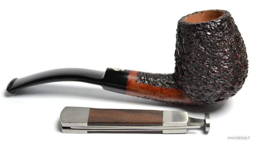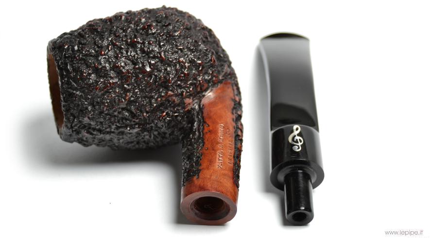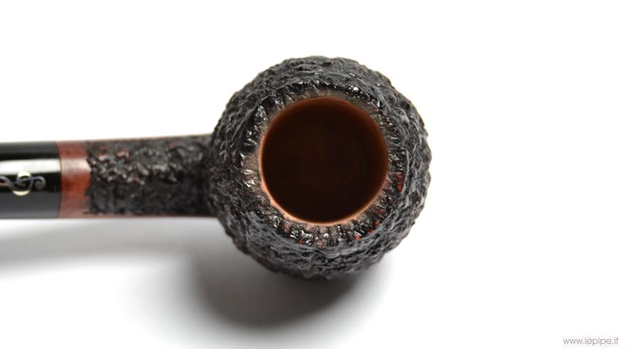 Pipa Don Carlos - Rusticata nera n. 20  Bocchino in metacrilato Senza filtro Rusticata Senza elaborazione Diametro Interno: 22 mm. Diametro Esterno: 44 mm. Lunghezza: 149 mm. Altezza: 52 mm. Peso: 53 gr. Profondità: 45 mm.