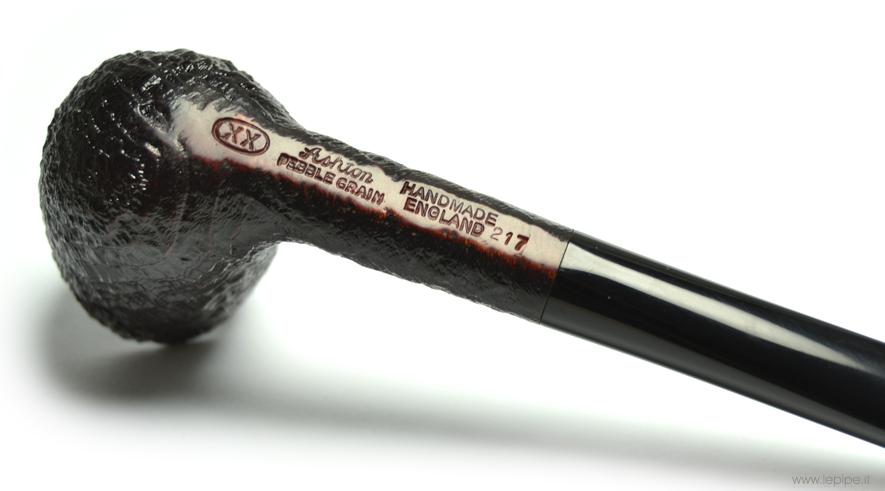 Pipa Ashton - Pebble Grain XX - n. 35  Bocchino in ashtonite Senza filtro Sabbiata Senza elaborazione Diametro Interno: 19 mm. Diametro Esterno: 33 mm. Lunghezza: 152 mm. Altezza: 45 mm. Peso: 32 gr. Profondità: 40 mm.