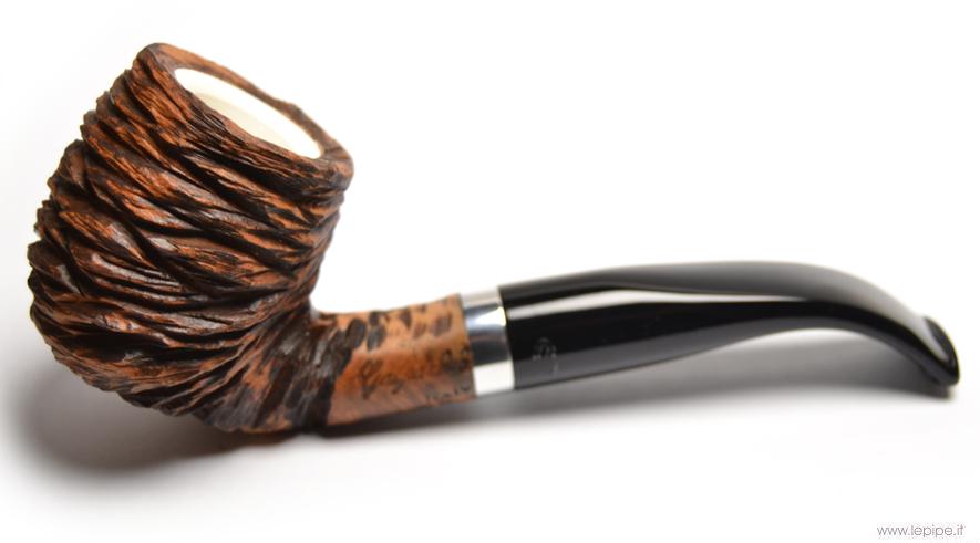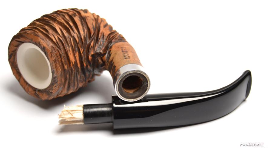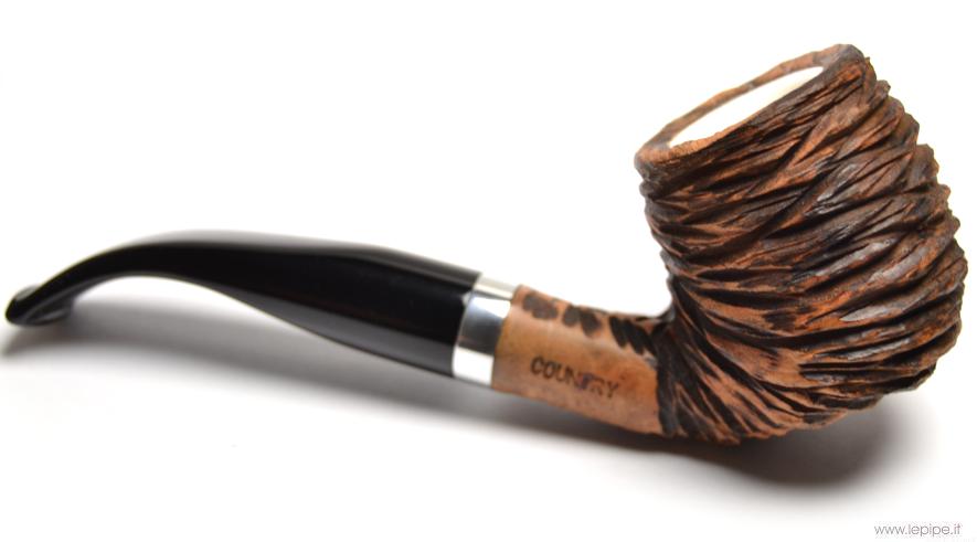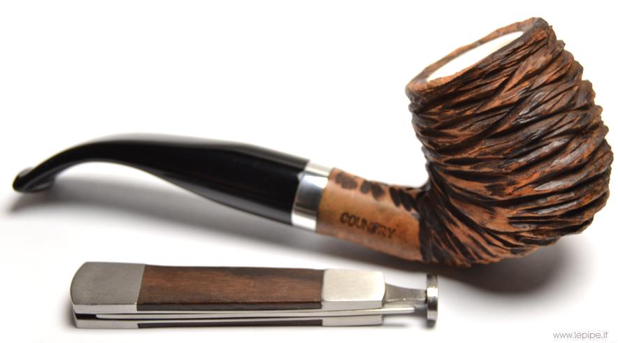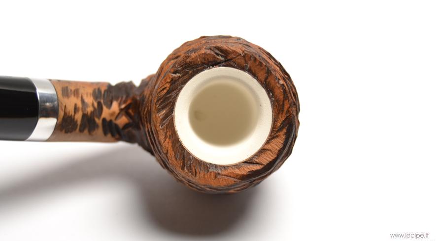 Pipa Gasparini - Country n. 2 Camino in schiuma Bocchino in metacrilato Con sede per filtro da 9 mm. Rusticata Con altra elaborazione Diametro Interno: 18 mm. Diametro Esterno: 43 mm. Lunghezza: 150 mm. Altezza: 46 mm. Peso: 63 gr. Profondità: 37 mm.