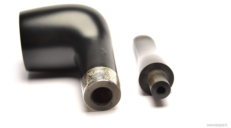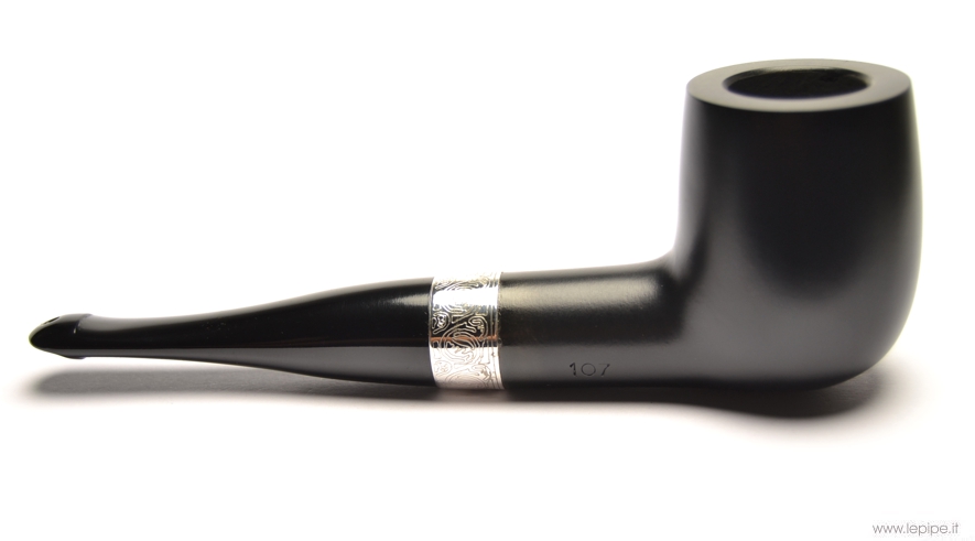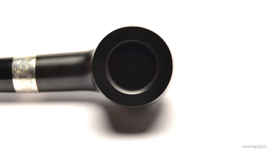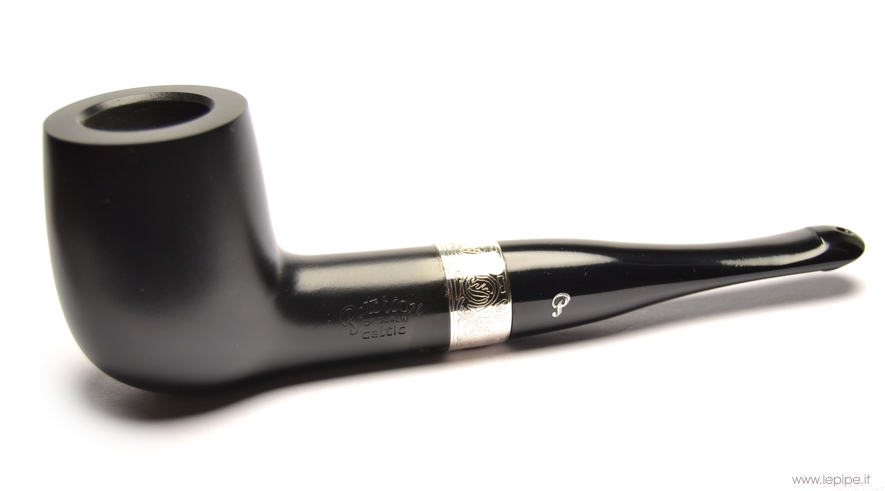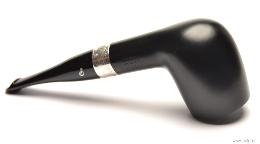 Pipa Peterson - Celtic Ebony n. 10  Bocchino in metacrilato Senza filtro Liscia Con elaborazione in argento Diametro Interno: 21 mm. Diametro Esterno: 39 mm. Lunghezza: 151 mm. Altezza: 49 mm. Peso: 58 gr. Profondità: 0 mm.