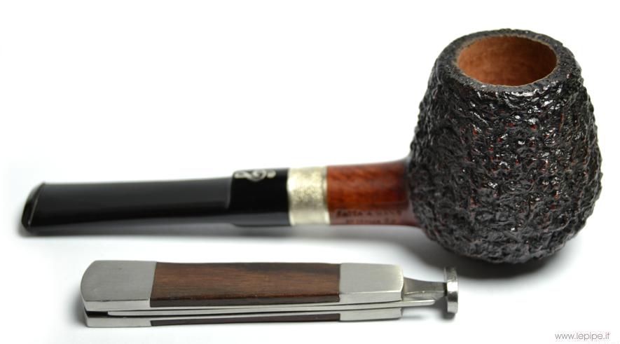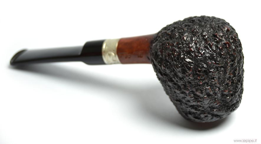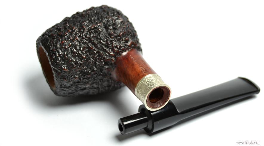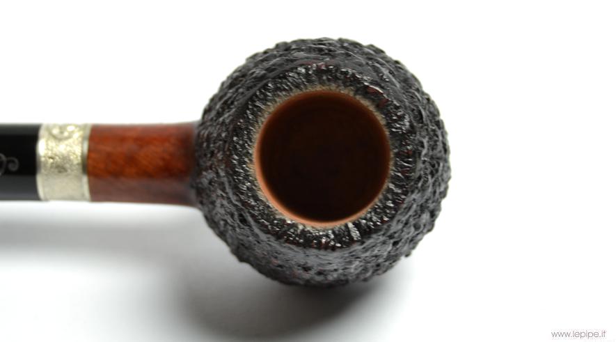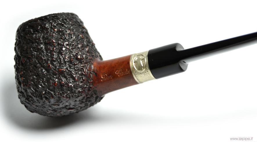 Pipa Don Carlos - Rusticata nera n. 23  Bocchino in metacrilato Senza filtro Rusticata Con elaborazione in argento Diametro Interno: 22 mm. Diametro Esterno: 44 mm. Lunghezza: 143 mm. Altezza: 48 mm. Peso: 60 gr. Profondità: 42 mm.