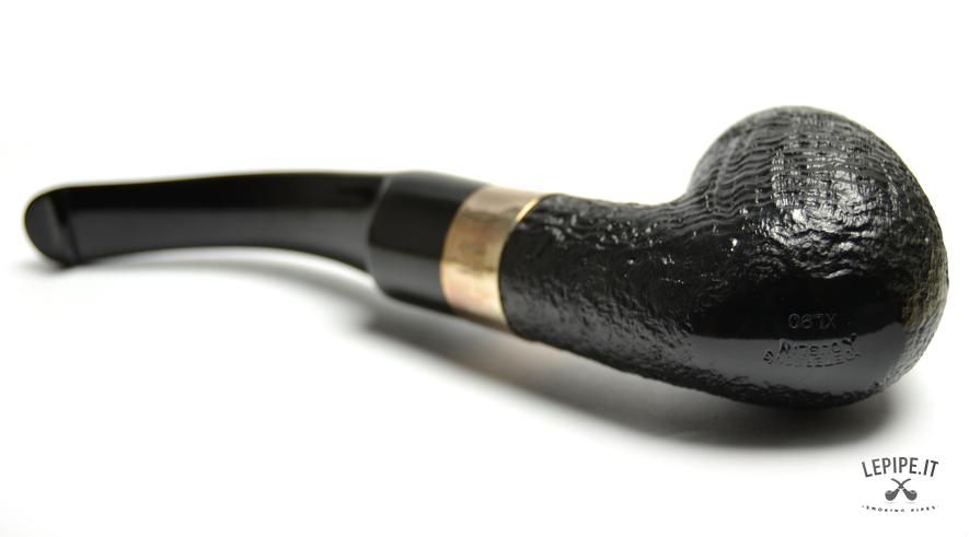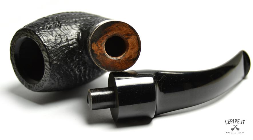 Pipa Peterson - Classic n. 1  Bocchino in ebanite Senza filtro Sabbiata Con elaborazione in argento Diametro Interno: 20 mm. Diametro Esterno: 40 mm. Lunghezza: 161 mm. Altezza: 52 mm. Peso: 68 gr. Profondità: 43 mm.
