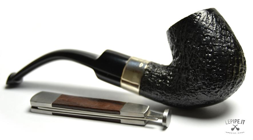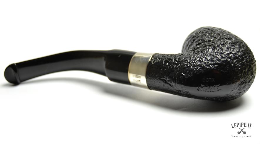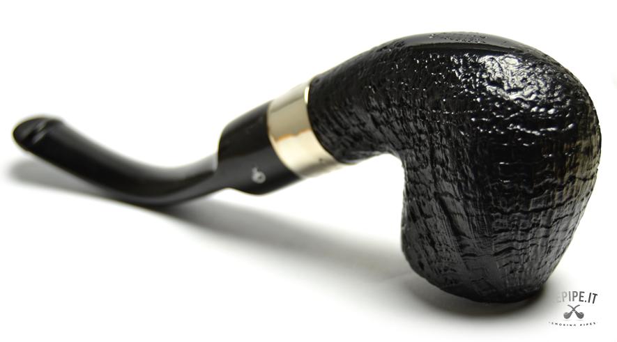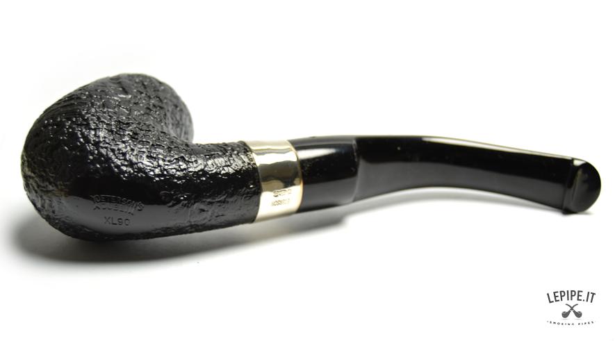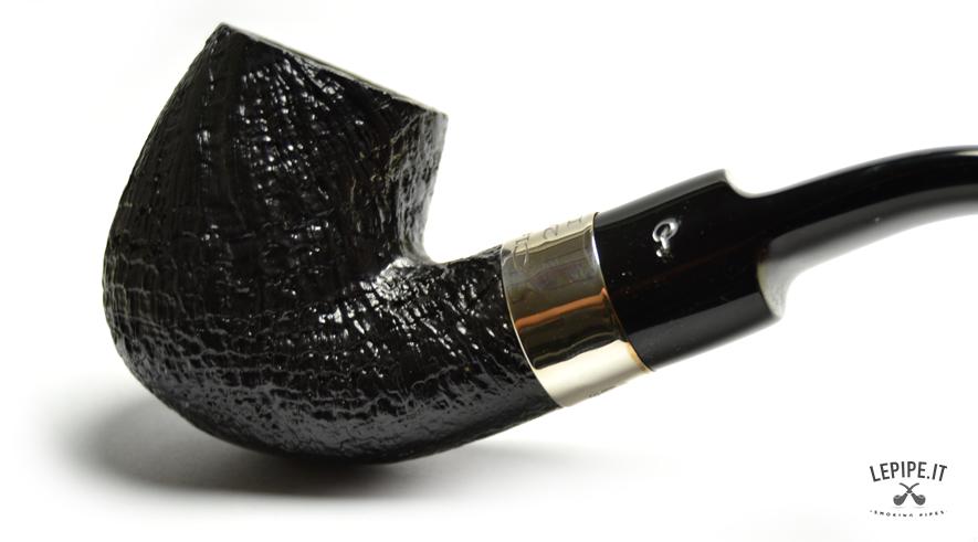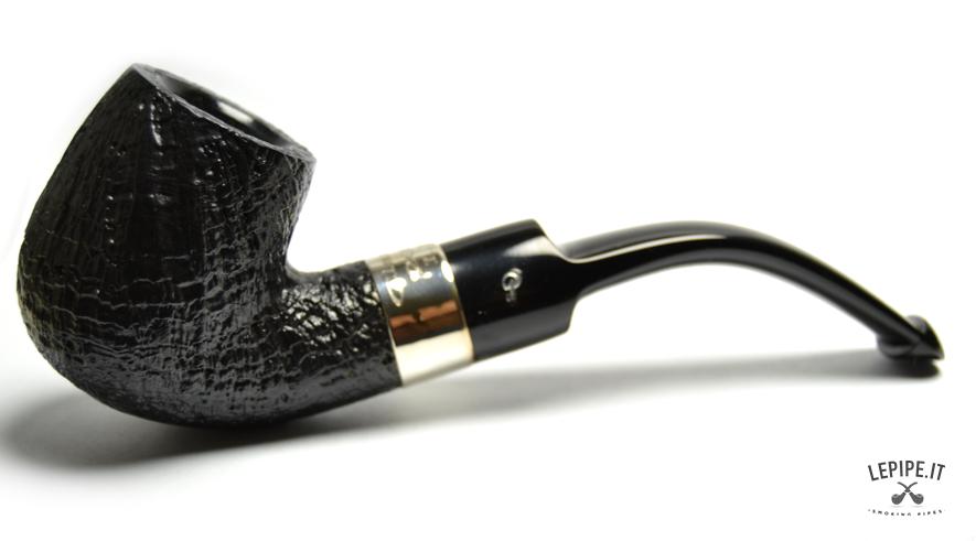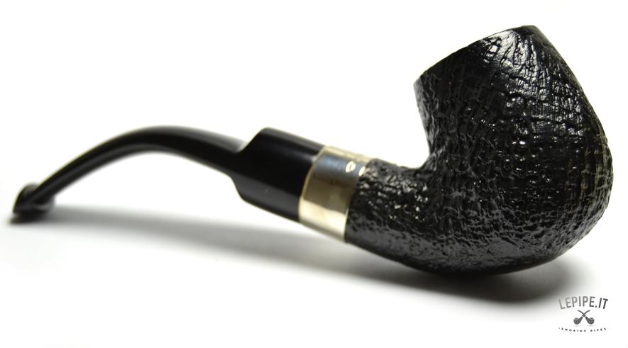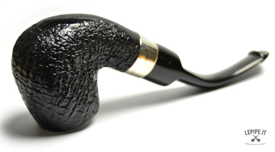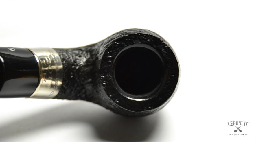 Pipa Peterson - Classic n. 2  Bocchino in ebanite Senza filtro Sabbiata Con elaborazione in argento Diametro Interno: 20 mm. Diametro Esterno: 40 mm. Lunghezza: 160 mm. Altezza: 49 mm. Peso: 63 gr. Profondità: 43 mm.