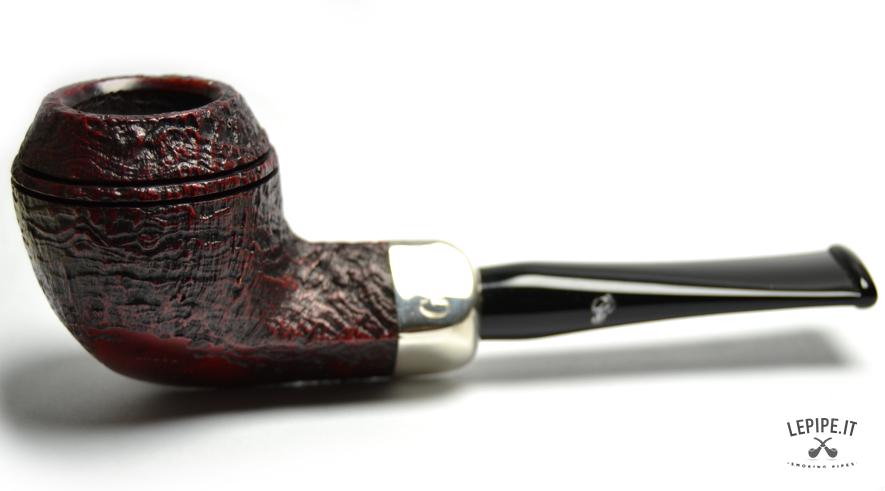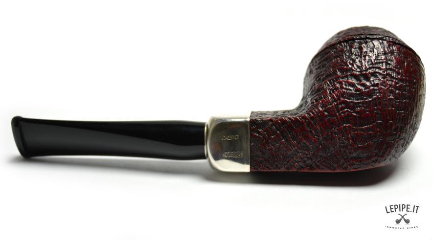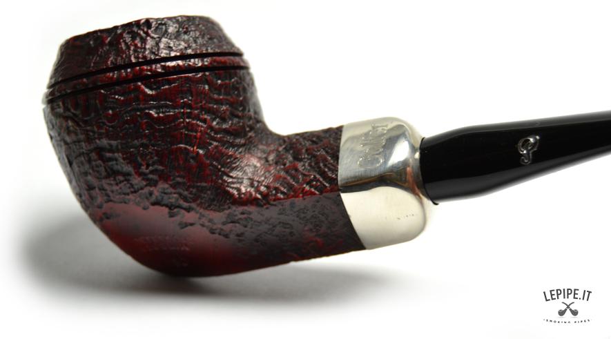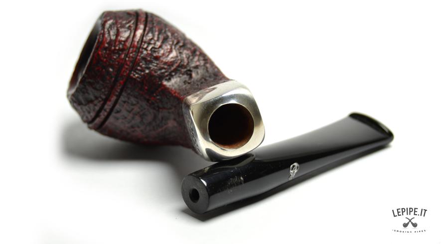 Pipa Peterson - Golfer n. 12  Bocchino in metacrilato Senza filtro Sabbiata Con elaborazione in argento Diametro Interno: 20 mm. Diametro Esterno: 40 mm. Lunghezza: 136 mm. Altezza: 47 mm. Peso: 43 gr. Profondità: 37 mm.