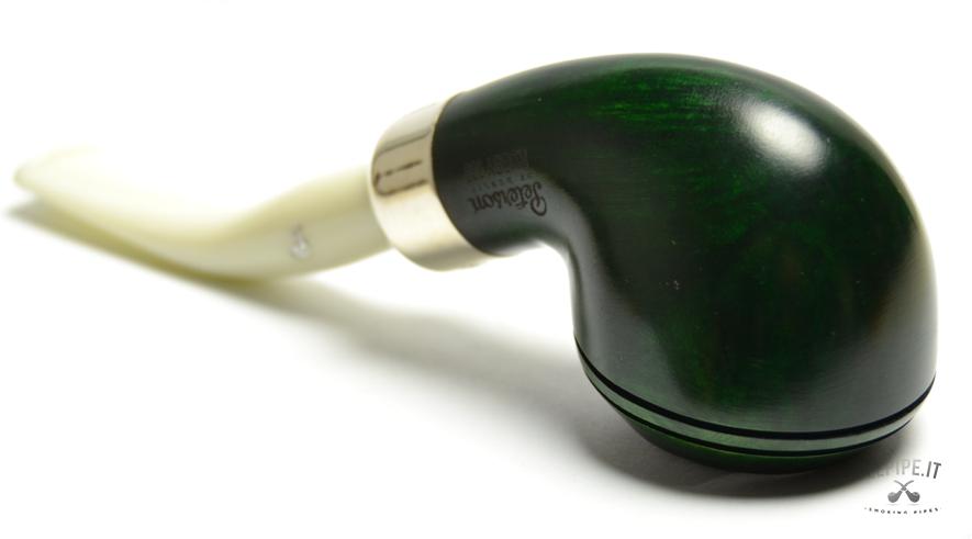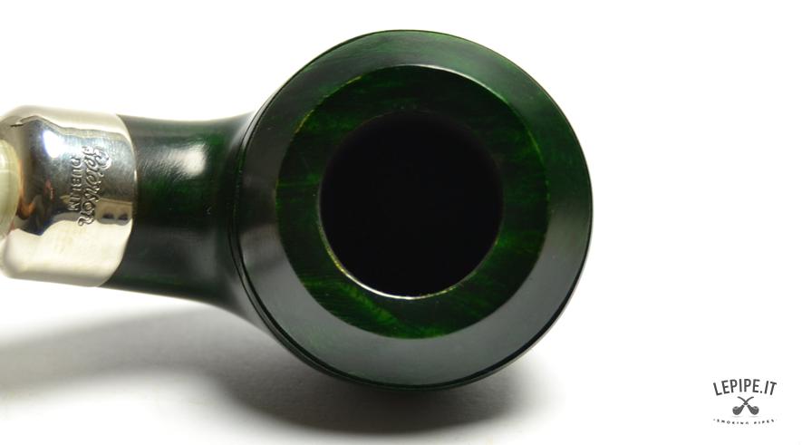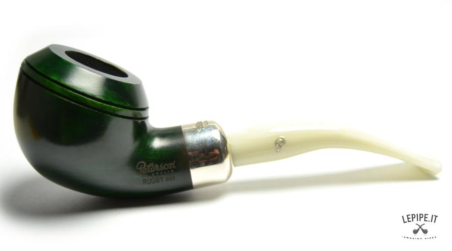 Pipa Peterson - Rugby n. 1  Bocchino in metacrilato Senza filtro Liscia Con elaborazione in argento Diametro Interno: 20 mm. Diametro Esterno: 42 mm. Lunghezza: 138 mm. Altezza: 39 mm. Peso: 44 gr. Profondità: 32 mm.