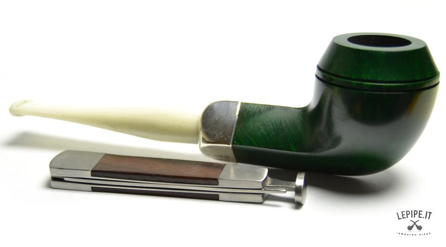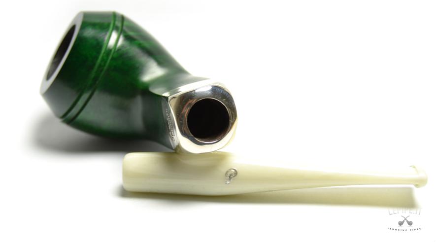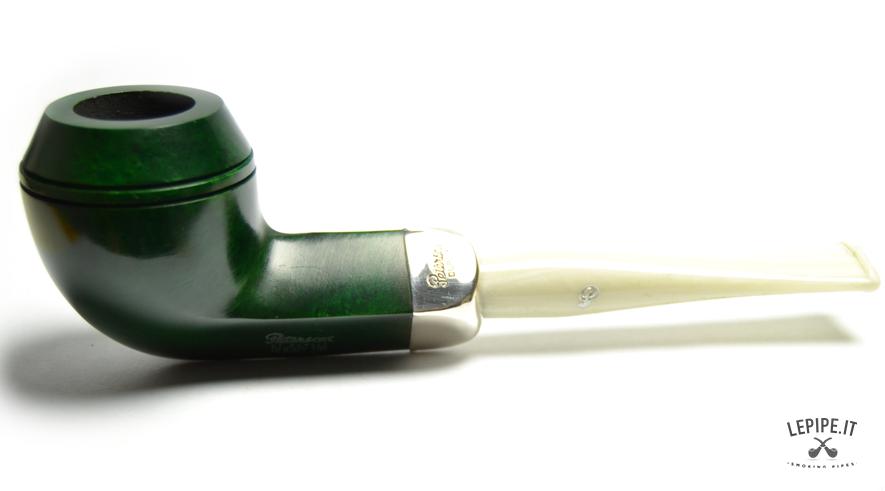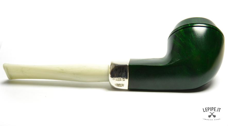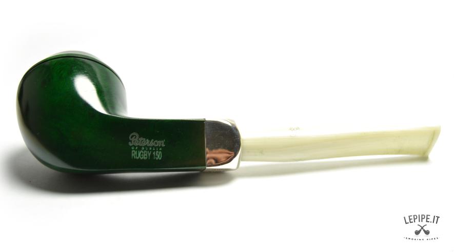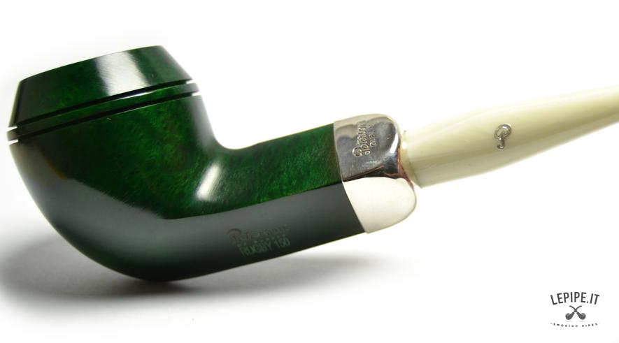 Pipa Peterson - Rugby n. 5  Bocchino in metacrilato Senza filtro Liscia Con elaborazione in argento Diametro Interno: 20 mm. Diametro Esterno: 40 mm. Lunghezza: 153 mm. Altezza: 46 mm. Peso: 46 gr. Profondità: 37 mm.
