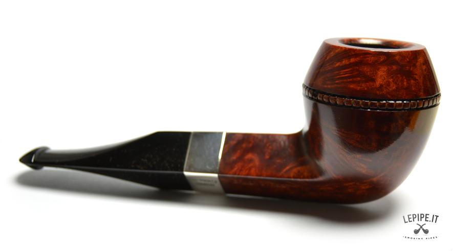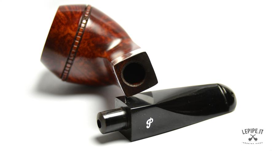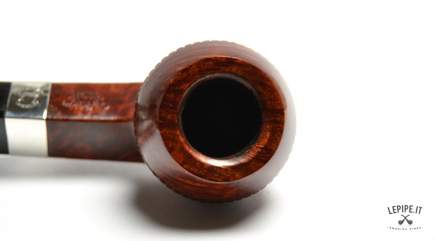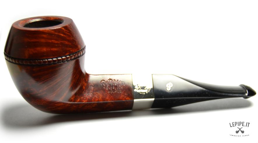 Pipa Peterson - S.H. n. 31 - Baker Street  Bocchino in ebanite Senza filtro Liscia Con elaborazione in argento Diametro Interno: 20 mm. Diametro Esterno: 44 mm. Lunghezza: 148 mm. Altezza: 54 mm. Peso: 58 gr. Profondità: 43 mm.