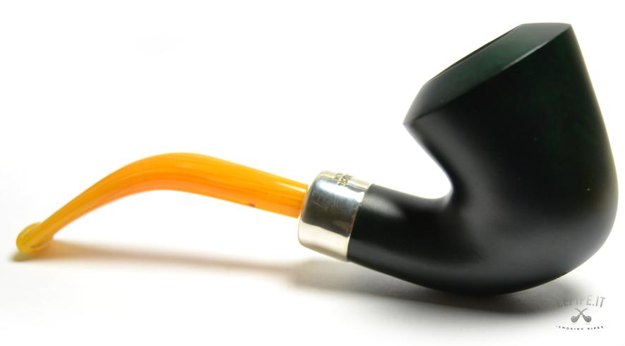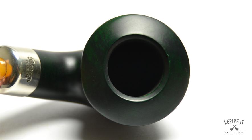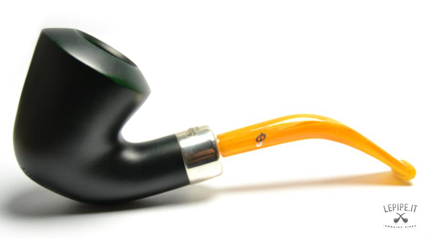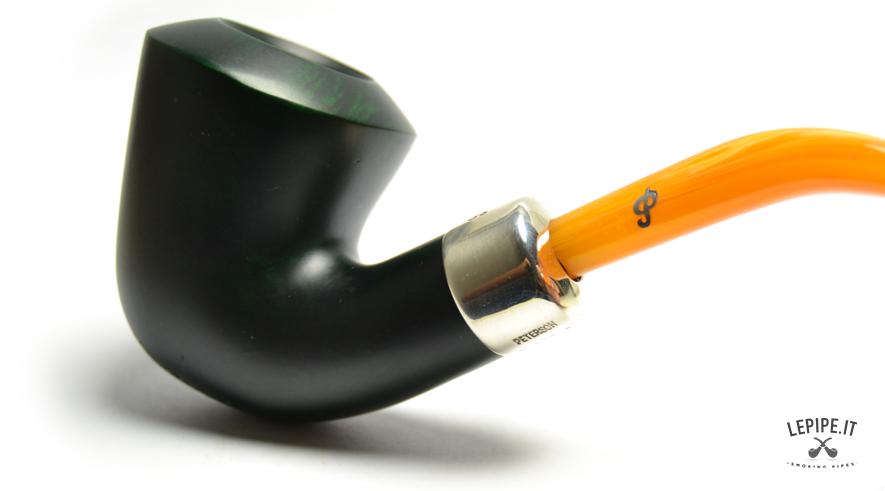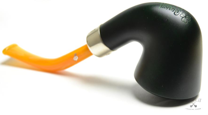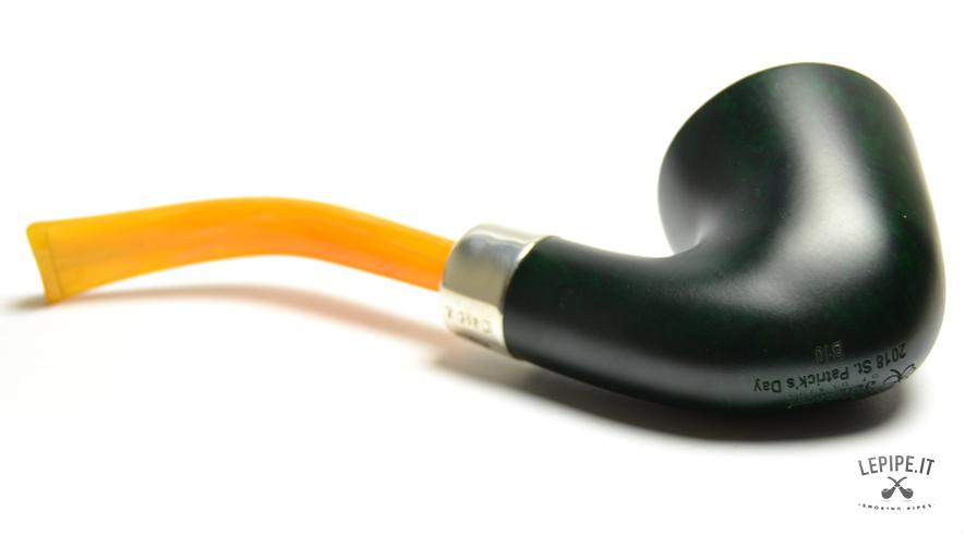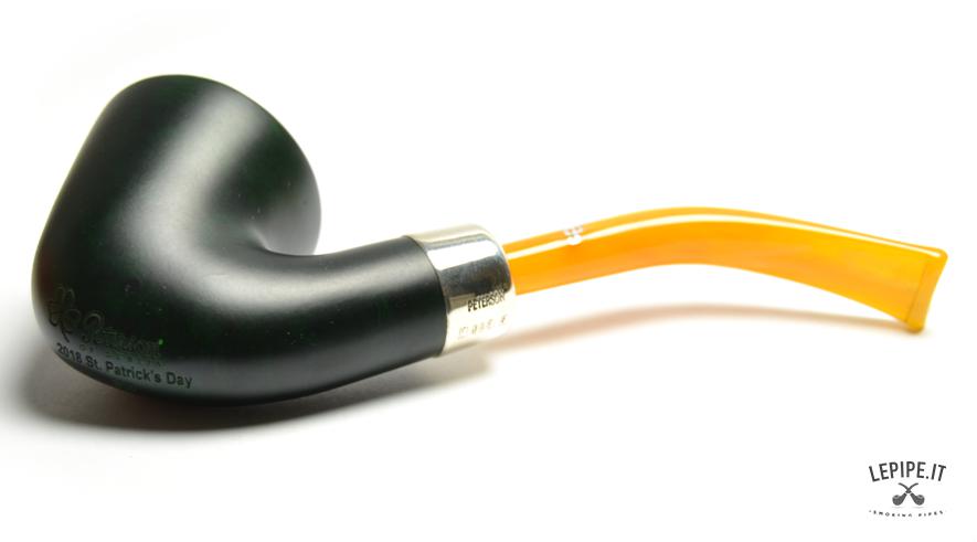 Pipa Peterson - St Patrick's Day 2018 n. 13 <a href=Perché Saint Patrick Day? Bocchino in ebanite Senza filtro Liscia Con elaborazione in argento Diametro Interno: 21 mm. Diametro Esterno: 42 mm. Lunghezza: 142 mm. Altezza: 53 mm. Peso: 44 gr. Profondità: 42 mm.">