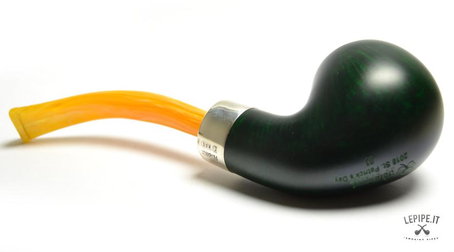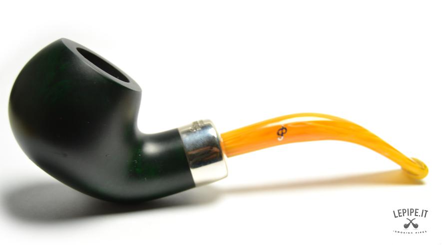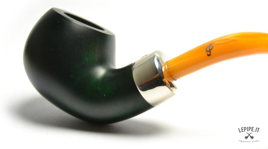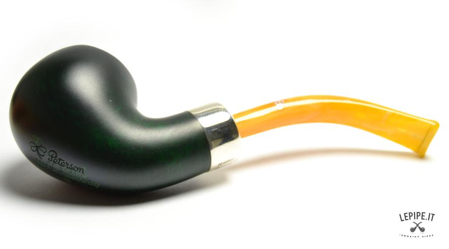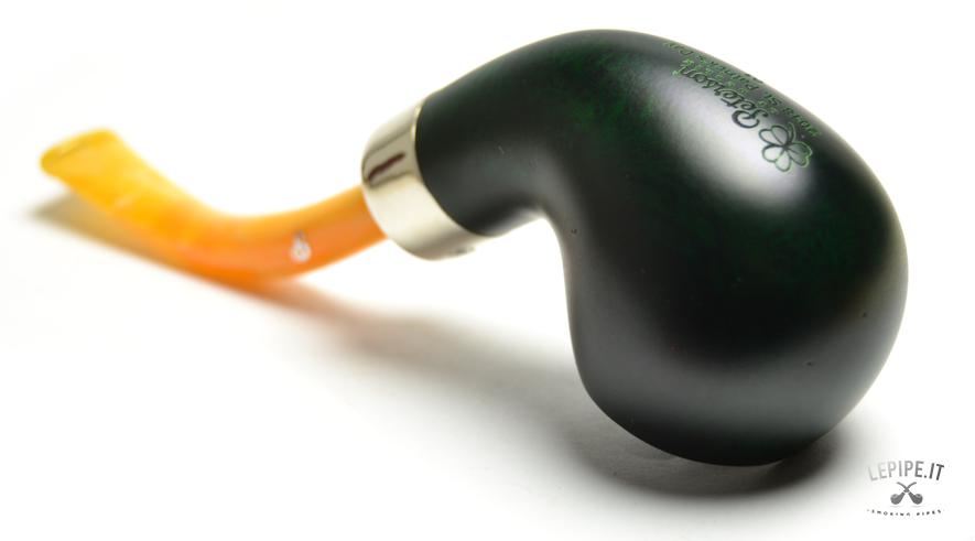 Pipa Peterson - St Patrick's Day 2018 n. 14 <a href=Perché Saint Patrick Day? Bocchino in ebanite Senza filtro Liscia Con elaborazione in argento Diametro Interno: 19 mm. Diametro Esterno: 40 mm. Lunghezza: 141 mm. Altezza: 37 mm. Peso: 46 gr. Profondità: 32 mm.">