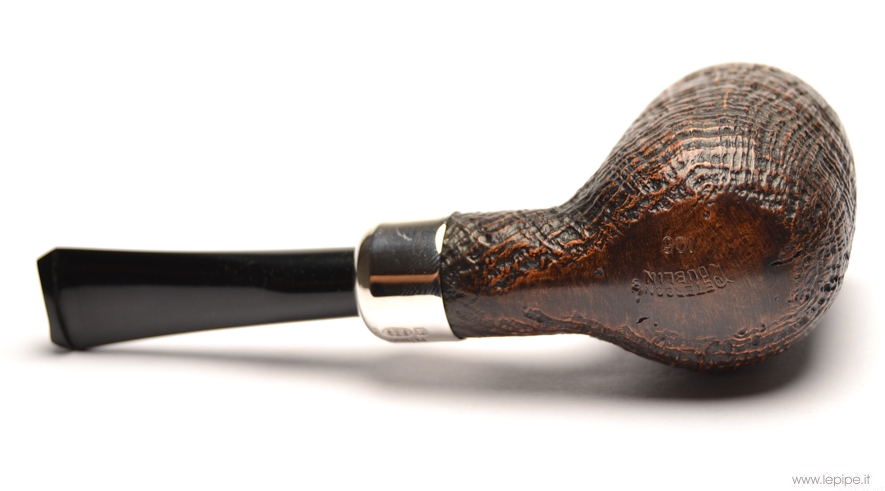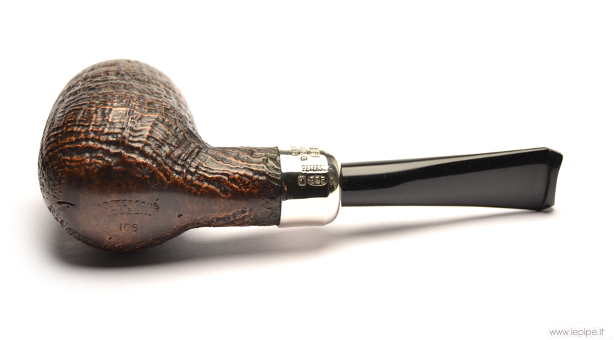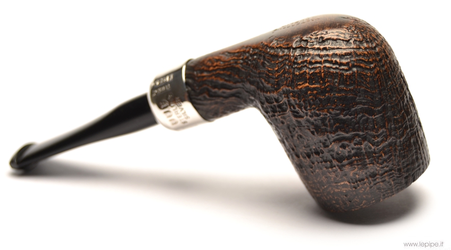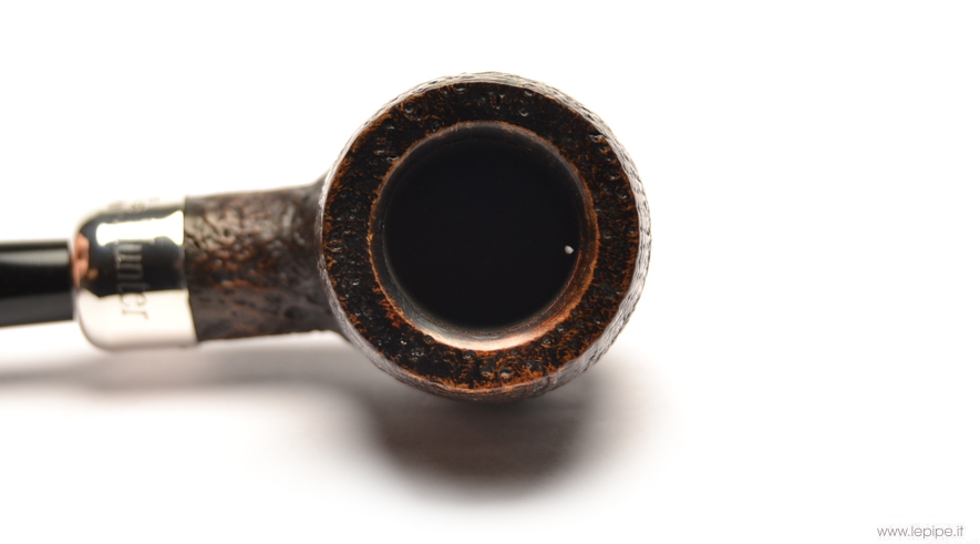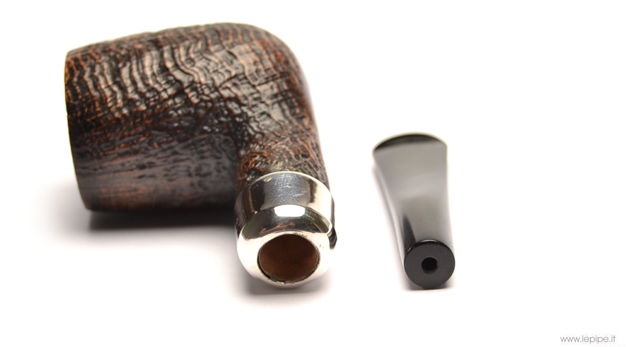 Pipa Peterson - Hunter n. 01 106 Bocchino in ebanite Senza filtro Sabbiata Con elaborazione in argento Diametro Interno: 20 mm. Diametro Esterno: 37 mm. Lunghezza: 120 mm. Altezza: 46 mm. Peso: 45 gr. Profondità: 0 mm.