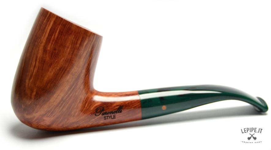 Pipa Paronelli - Style n. 1  Bocchino in metacrilato Senza filtro Liscia Senza elaborazione Diametro Interno: 22 mm. Diametro Esterno: 39 mm. Lunghezza: 142 mm. Altezza: 60 mm. Peso: 60 gr. Profondità: 46 mm.
