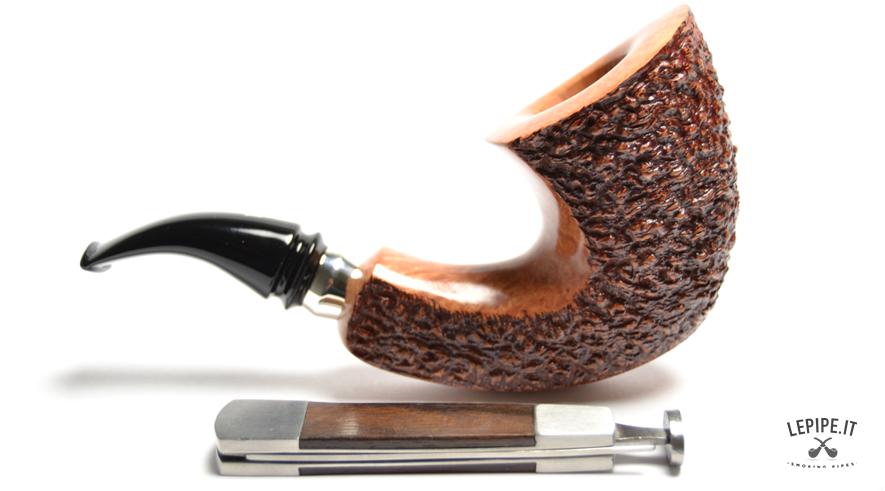 Pipa Rinaldo - Egea n. 7 Y2  Bocchino in metacrilato Senza filtro Sabbiata Con elaborazione in argento Diametro Interno: 21 mm. Diametro Esterno: 45 mm. Lunghezza: 132 mm. Altezza: 58 mm. Peso: 72 gr. Profondità: 45 mm.