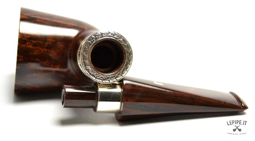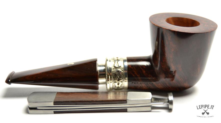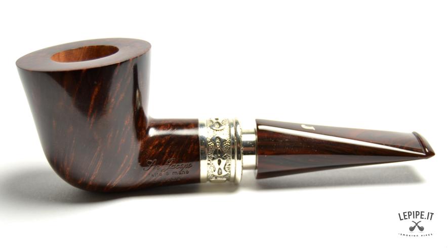 Pipa Ser Jacopo - Delecta n. 5 L1, Delecta Argento Bocchino in metacrilato Senza filtro Liscia Con elaborazione in argento Diametro Interno: 20 mm. Diametro Esterno: 42 mm. Lunghezza: 136 mm. Altezza: 44 mm. Peso: 67 gr. Profondità: 32 mm.