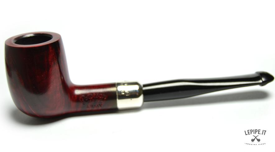 Altre note: 102 - La Peterson Army ha la vera in argento e la radica di color ciliegio. Questa montatura consente di rimuovere il bocchino mentre la pipa è ancora calda senza danneggiarla